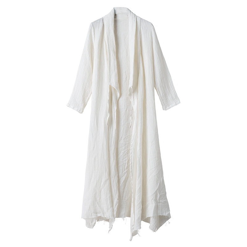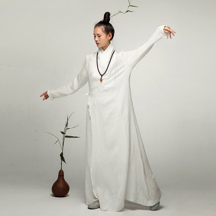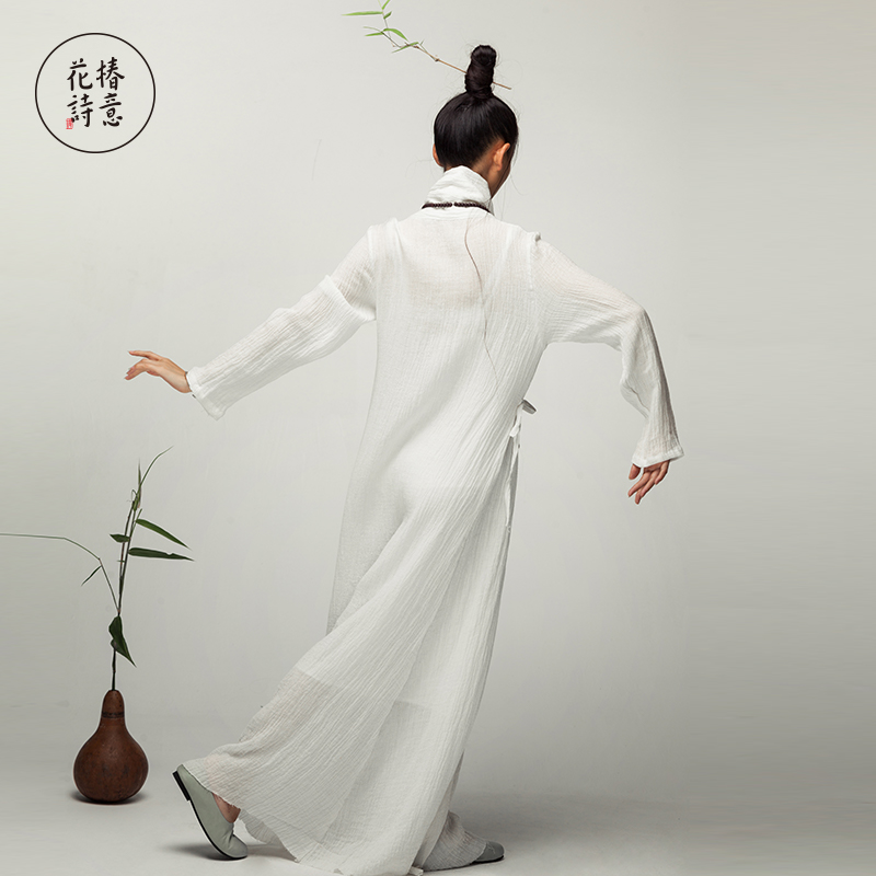 花椿诗意原创设计禅服女亚麻长款连衣裙 长袖中国风复古修身女装