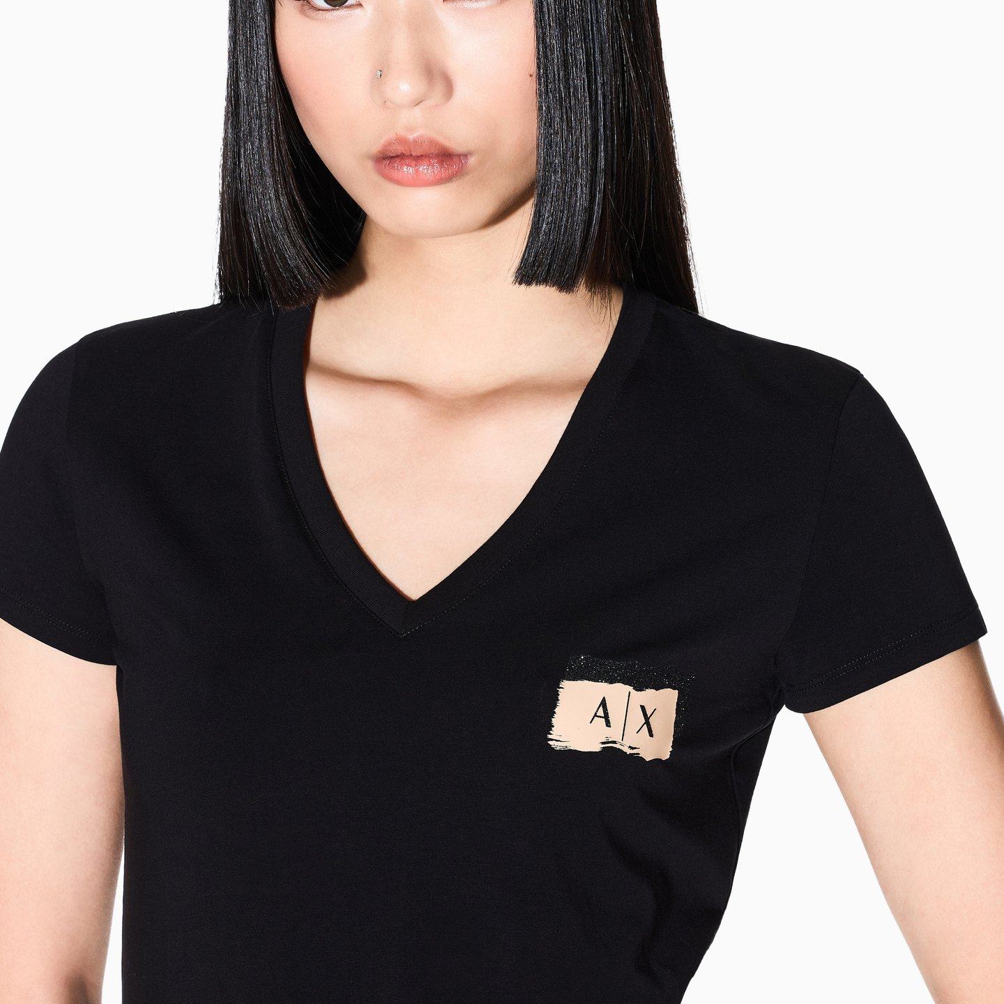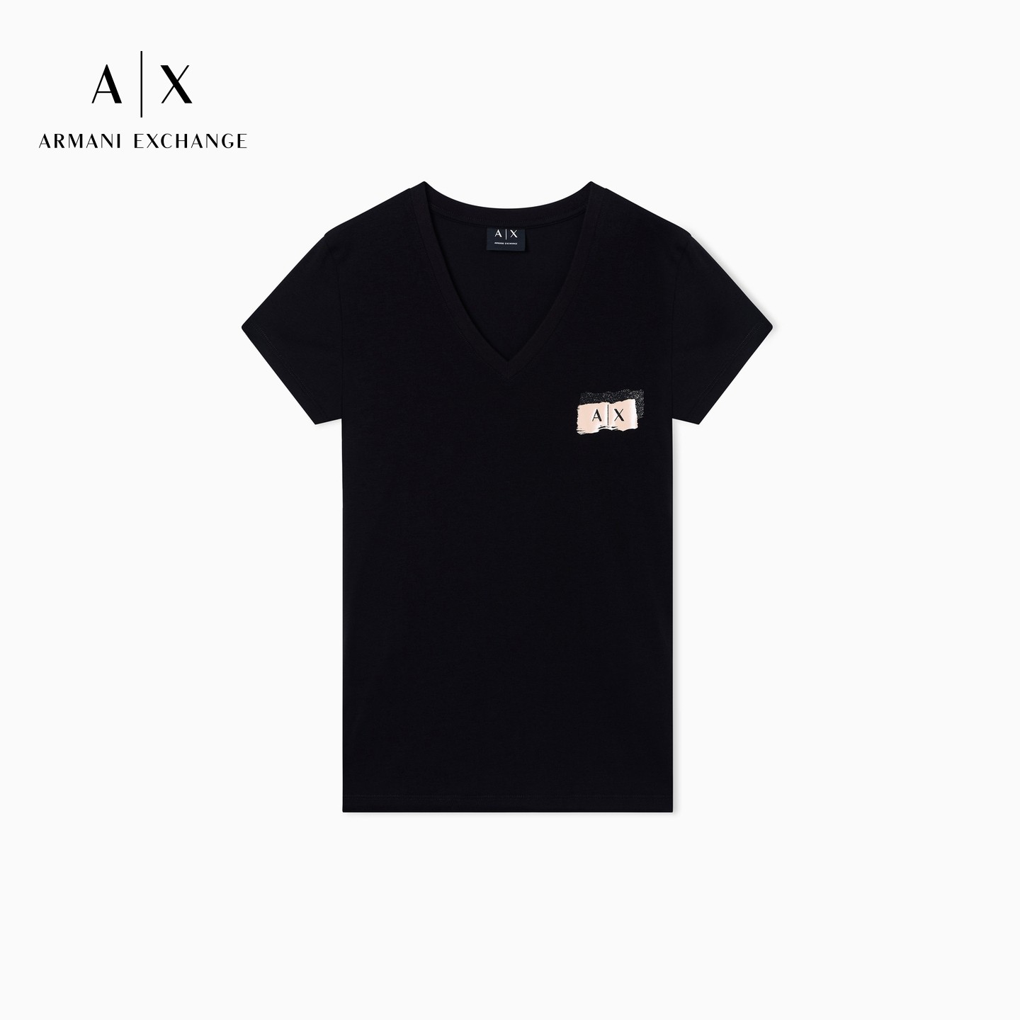 ARMANI EXCHANGE/阿玛尼26年春季新款女士修身V领印花短袖轻薄T恤