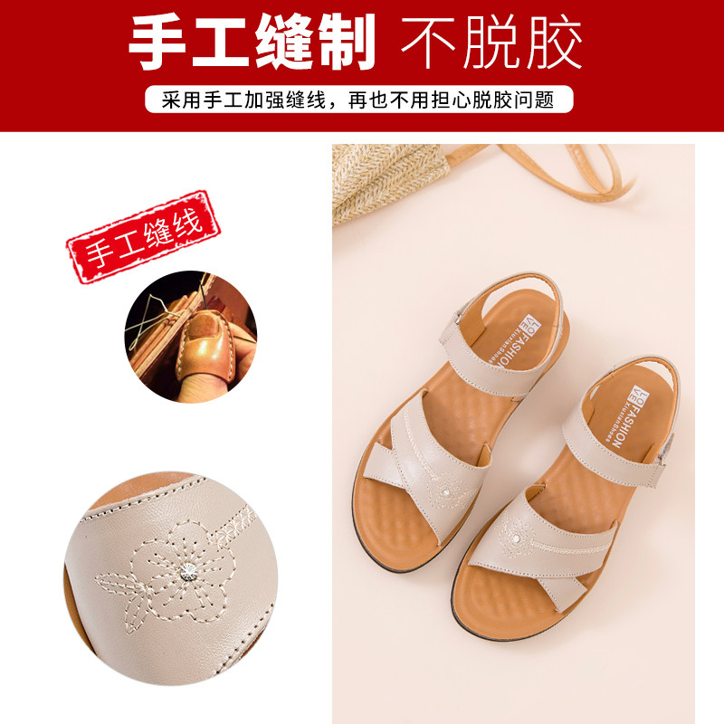 夏季妈妈鞋真皮凉鞋女中老年人平跟软底舒适大码老人平底奶奶皮鞋