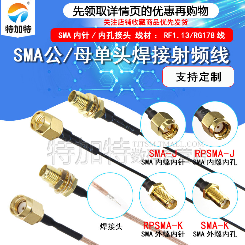 1.13跳线 SMA公头/母头 SMA-J/SMA-K天线延长线 RG178单头焊接线
