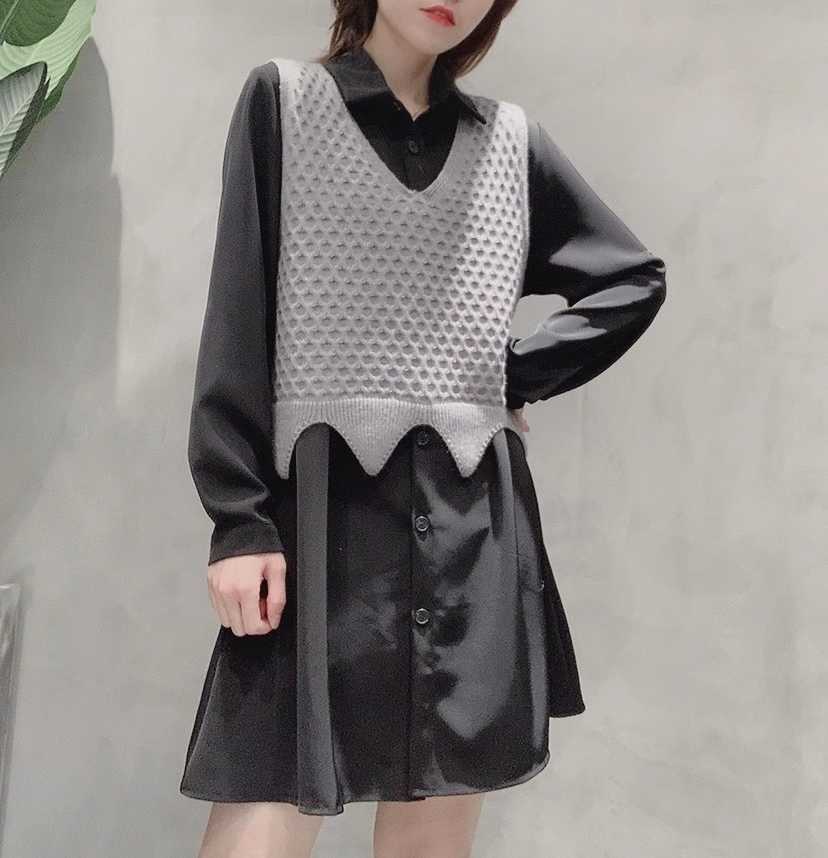 素夏Susa2025秋季新款韩版时尚简约潮流特色针织衬衫两件套连衣裙
