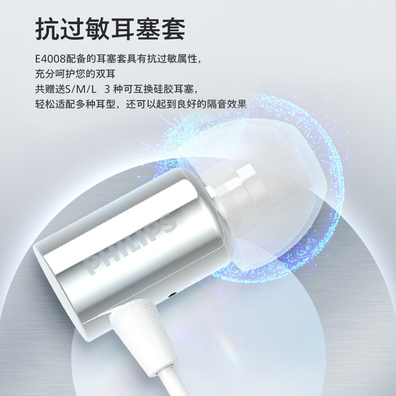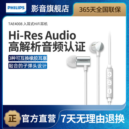 飞利浦TAE4008入耳式有线HiFi耳机子弹头高解析音乐耳机通话线控