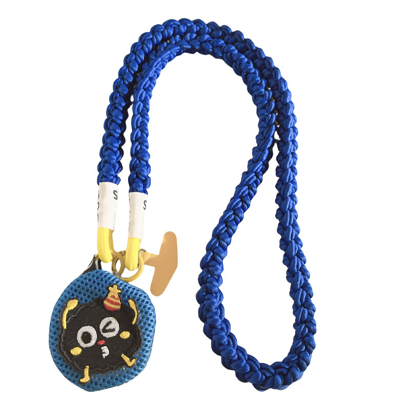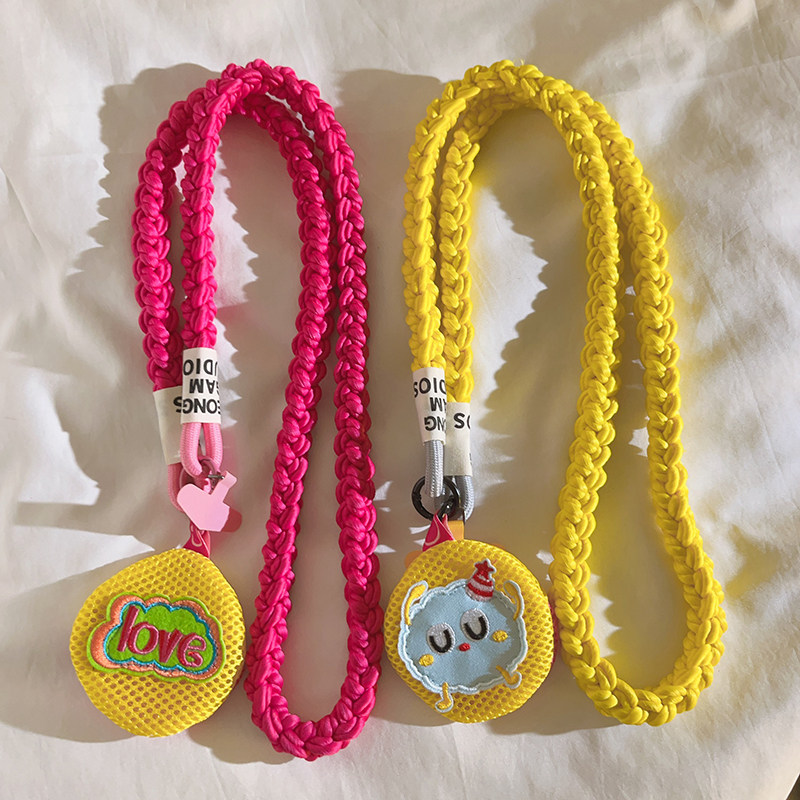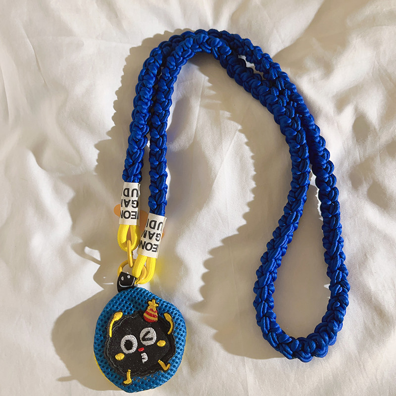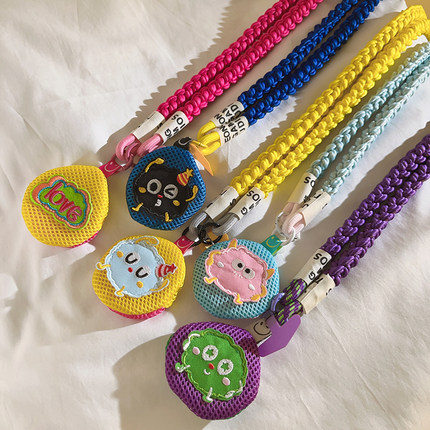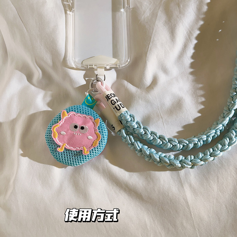 超萌卡通可爱收纳小怪兽网格零钱包编织尼龙斜跨长绳适用于手机壳趣味学生女款ccd户外结实耐用侧肩便携挂脖