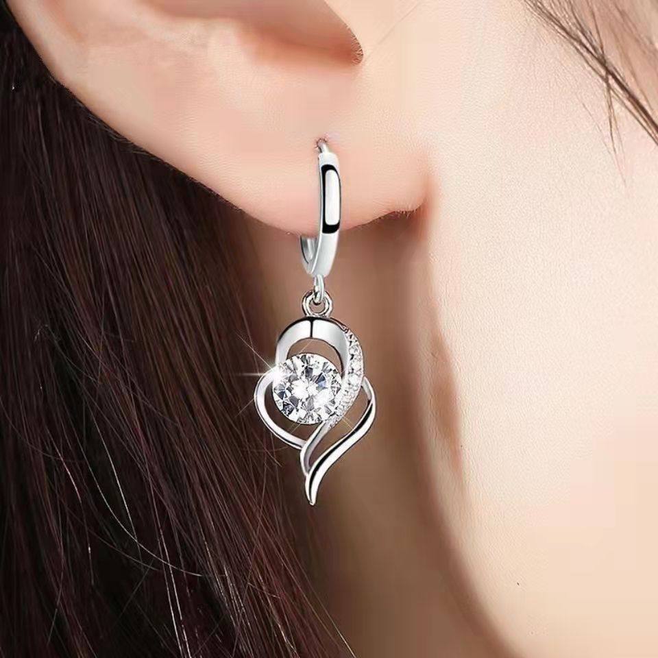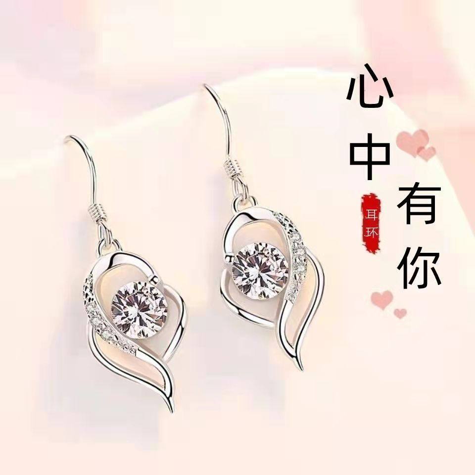 925纯银耳环女 韩国气质防过敏心中有你耳坠耳扣网红优雅简约耳钉