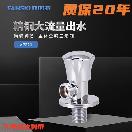 菲时特三角阀全铜加厚冷热水通用热水器马桶角阀 卫生间4分止水阀