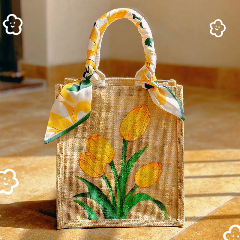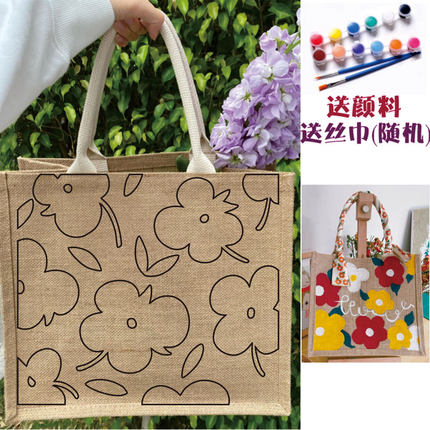 diy手工包包麻布手提袋手绘帆布包国风创意编织彩绘涂鸦麻布袋DIY