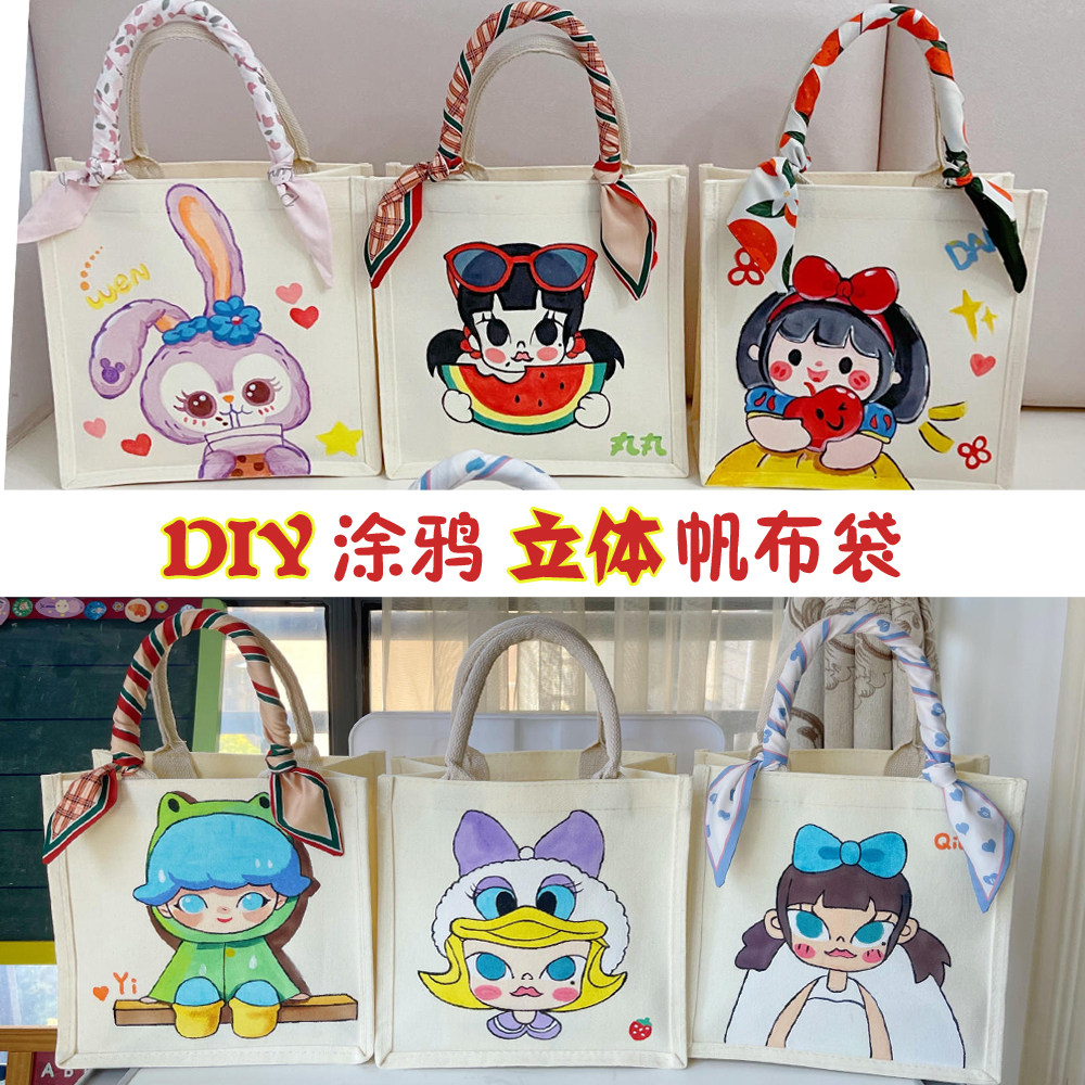 DIY手工包包麻布袋涂鸦手提袋