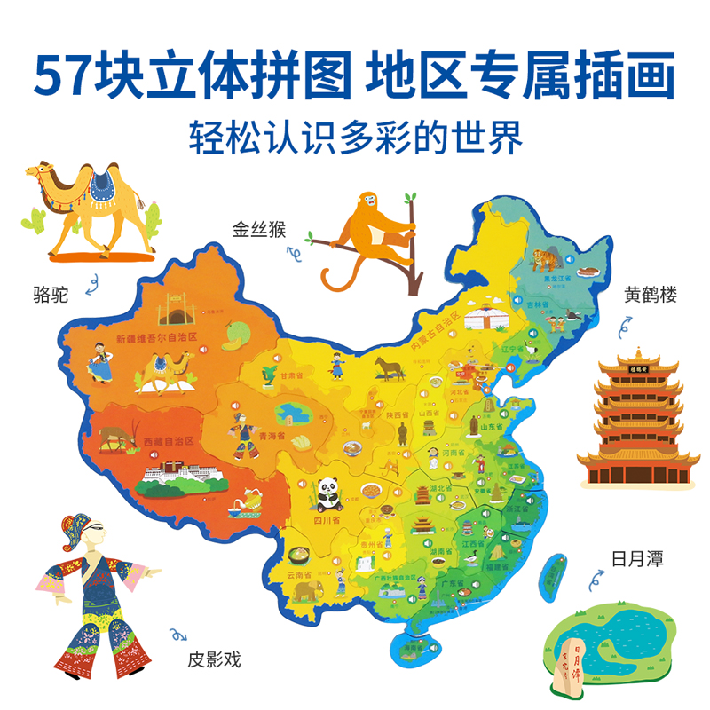 中国地图磁力拼图会说话的2025新版儿童版早教有声益智3d立体凹凸