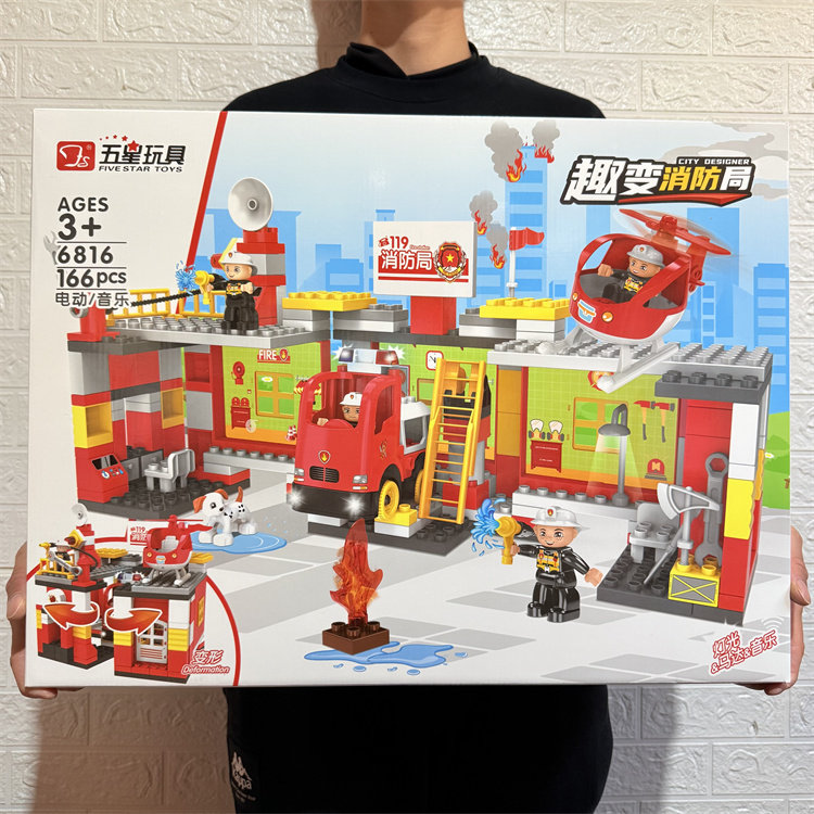 五星玩具大颗粒拼插小宝宝益智动手能力培养大礼盒多款式警察消防