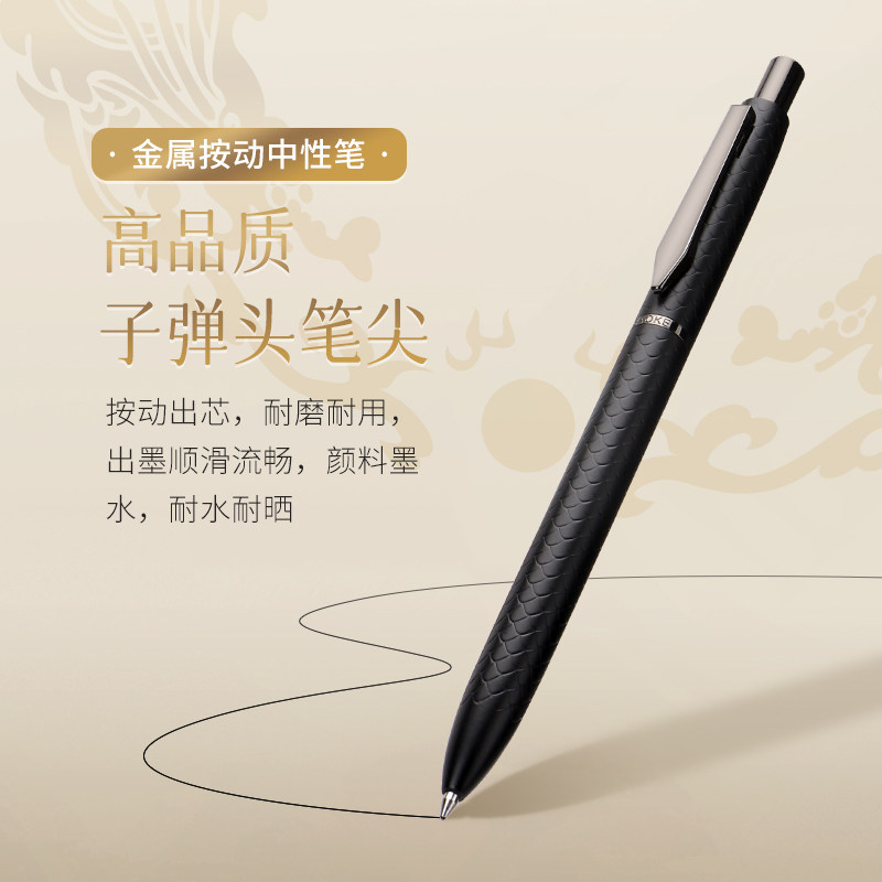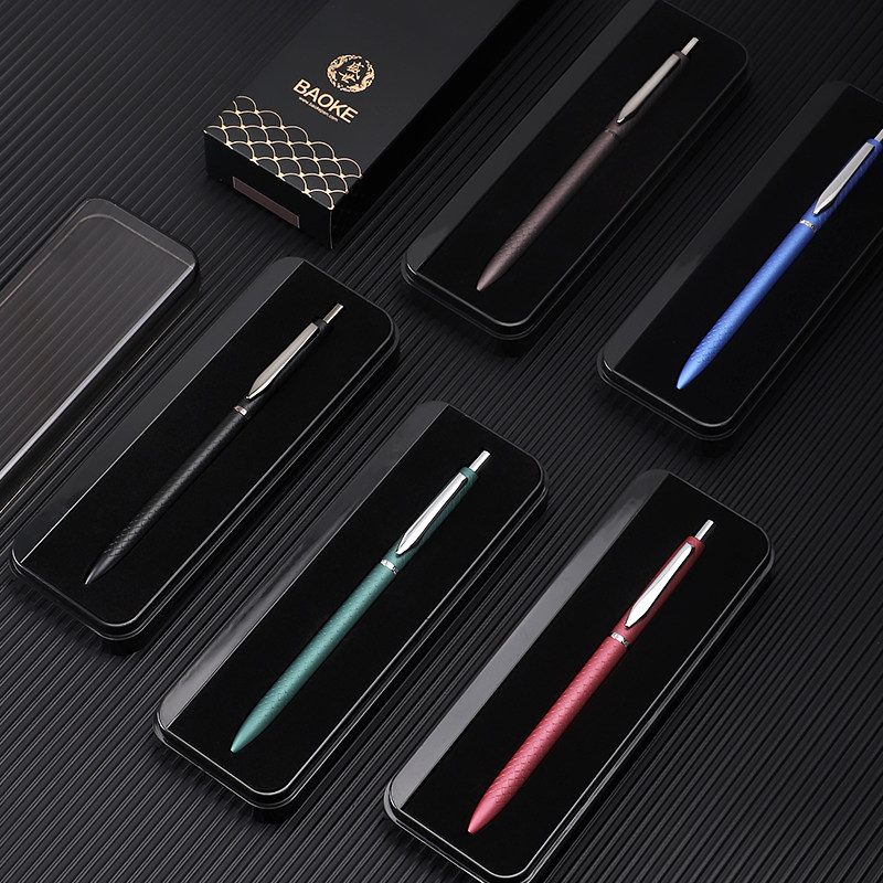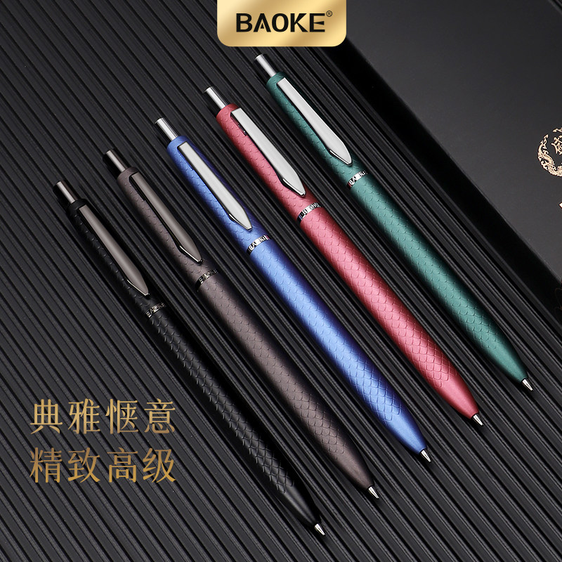 宝克0.7mm全金属按动中性笔重手感水笔学生用碳素笔黑色办公签字笔商务高档高颜值硬笔书法练字笔礼盒装