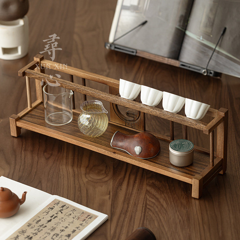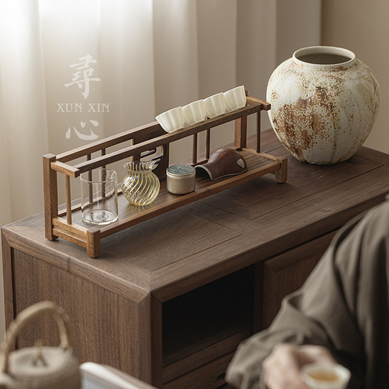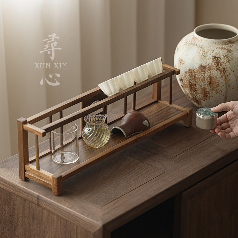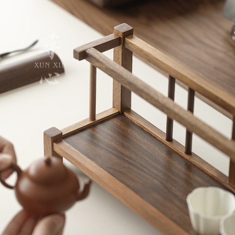 寻心桌面置物架小型中式博古架木质茶杯收纳紫砂壶茶具二层展示架