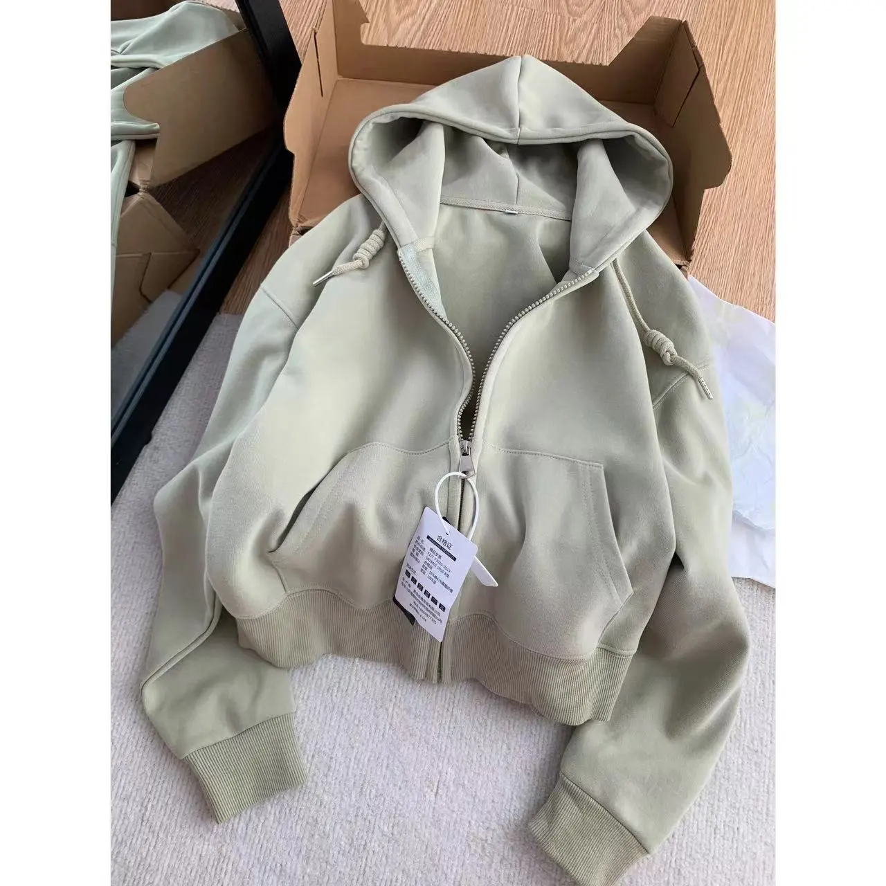 品牌剪标撤柜纯棉短款连帽卫衣