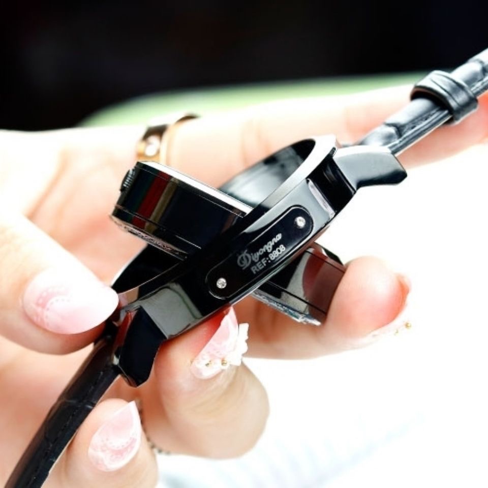 帝泳娜韩版潮款黑色双面翻转满天星手表时尚潮流大表盘女表石英表
