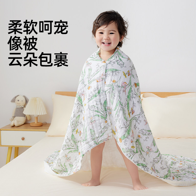 【晁然推荐】婧麒婴儿纱布浴巾2条装大童宝宝纯棉吸水