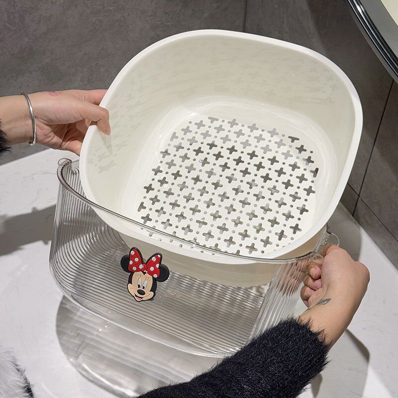 高颜值洗菜沥水篮家用洗水果盘蔬菜厨房双层加厚滤水篓盆洗菜篮子