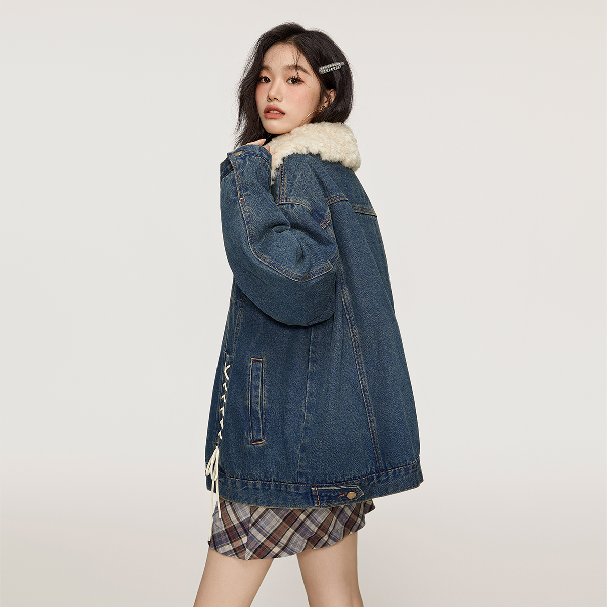 Eptison加厚翻领牛仔外套棉服