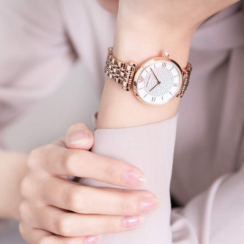 阿玛尼满天星手表女 时尚轻奢镶钻气质石英手表官方正品AR11244