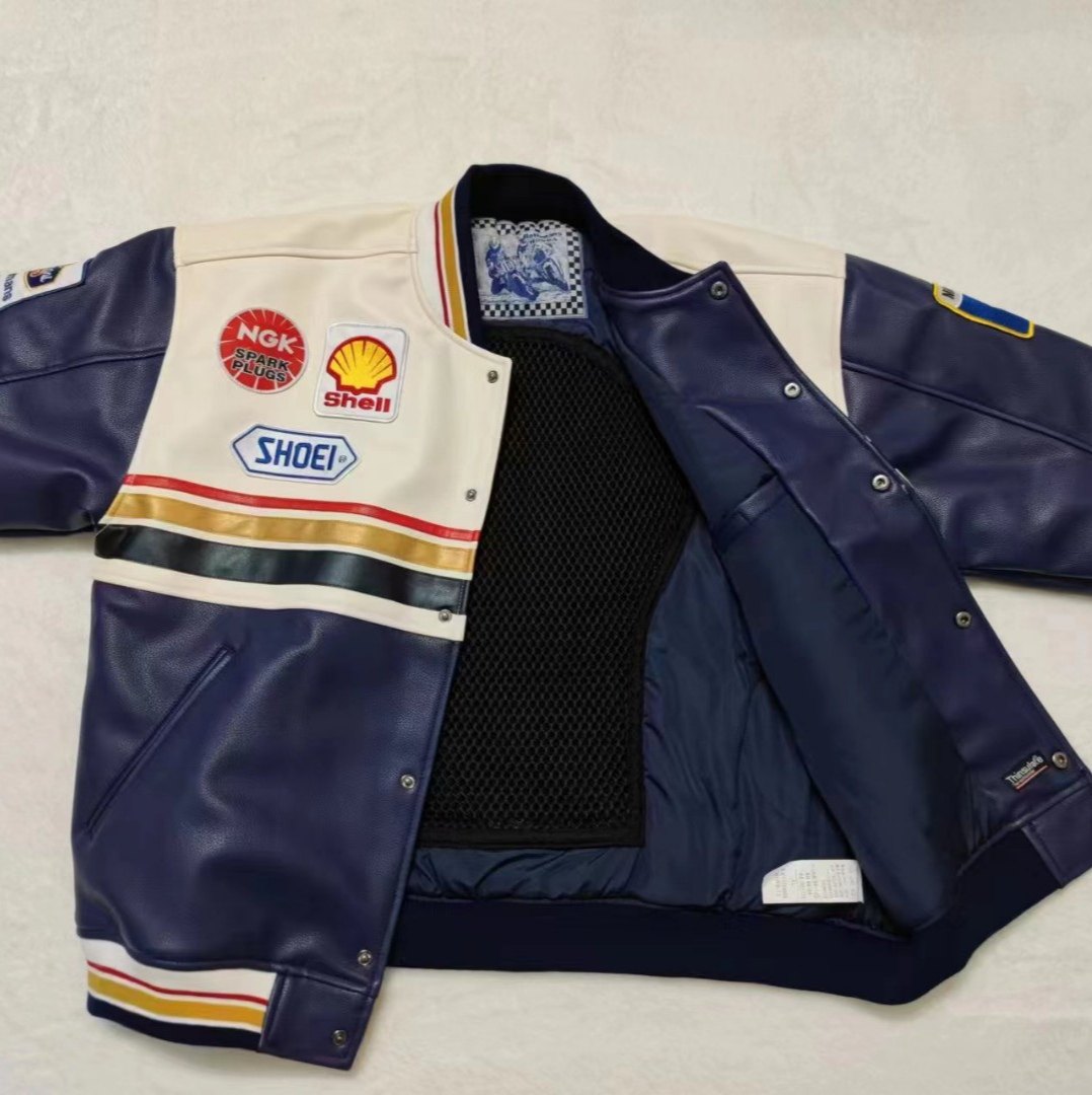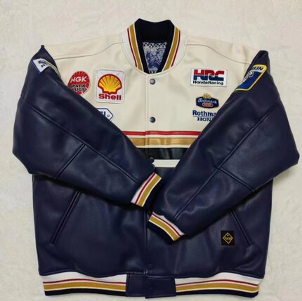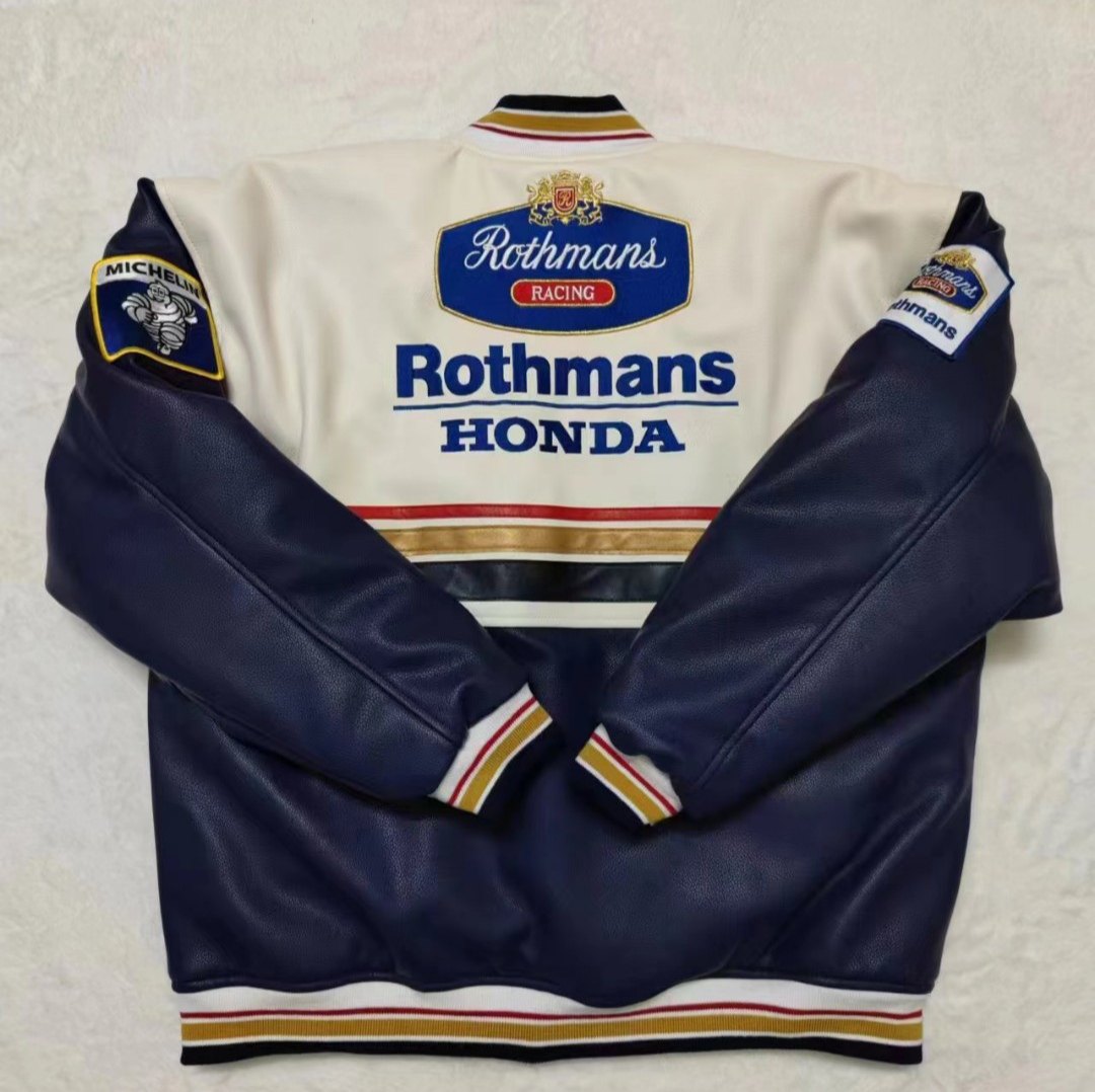 适用乐福门Rothmans联名款复古机车皮衣防水防摔保暖摩托车骑行服