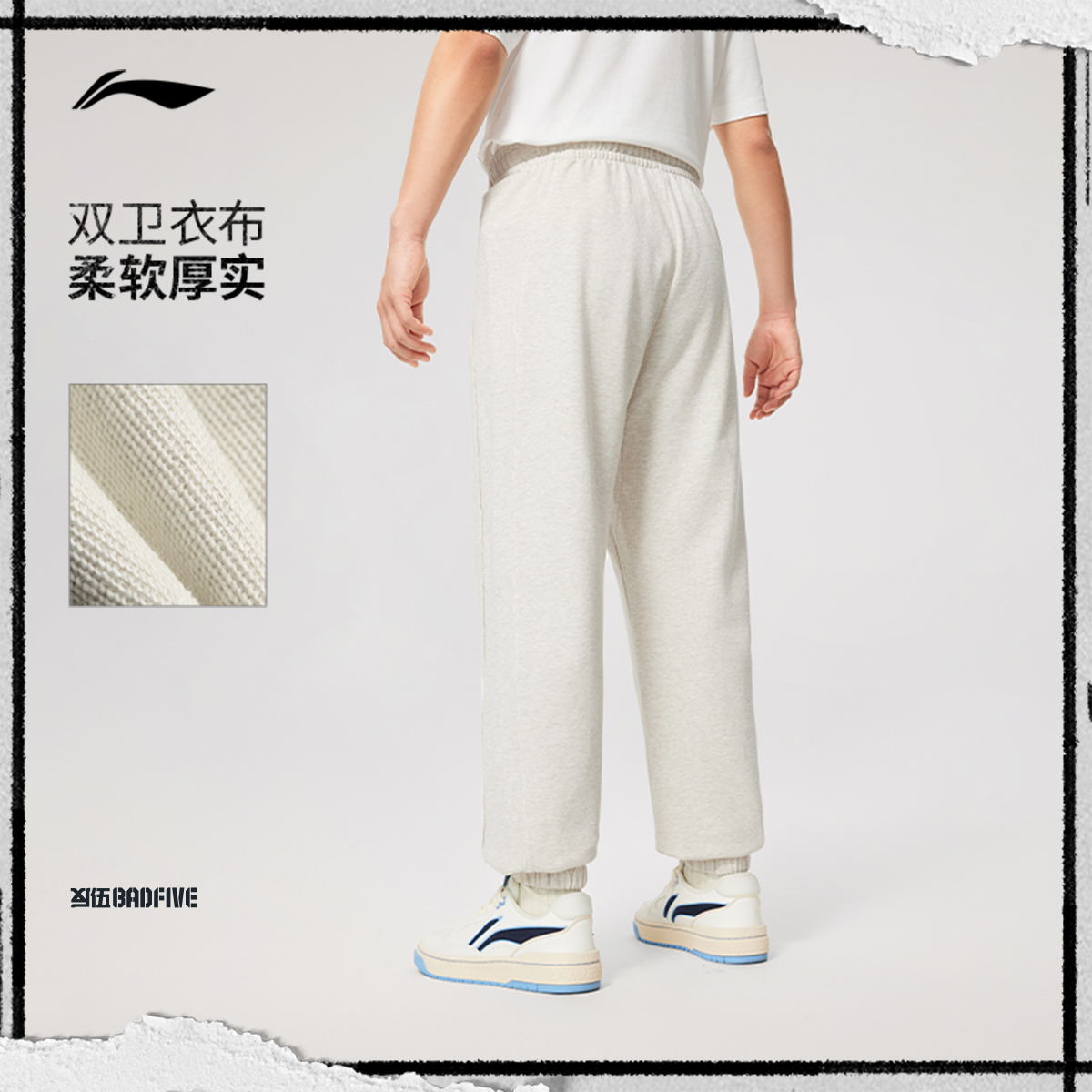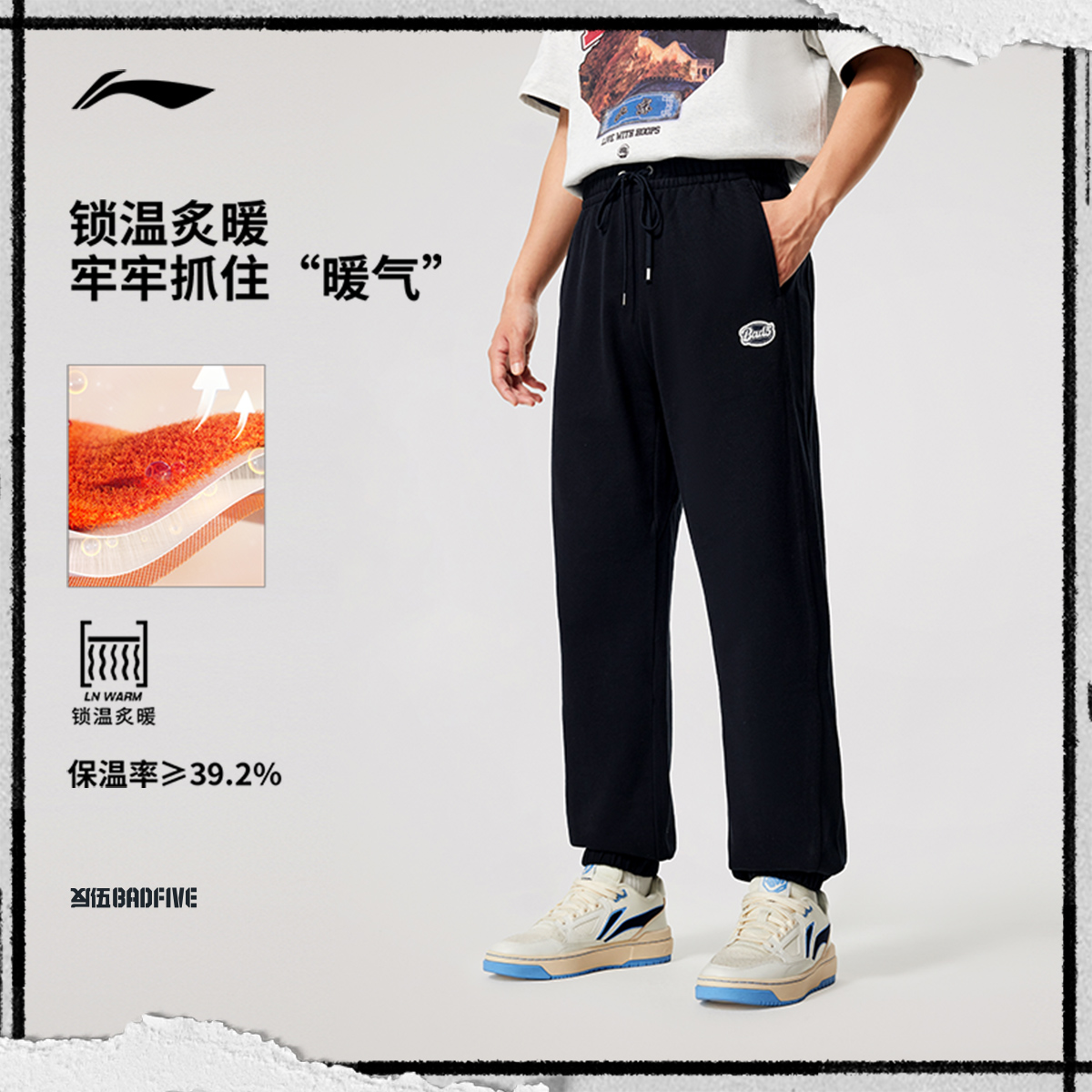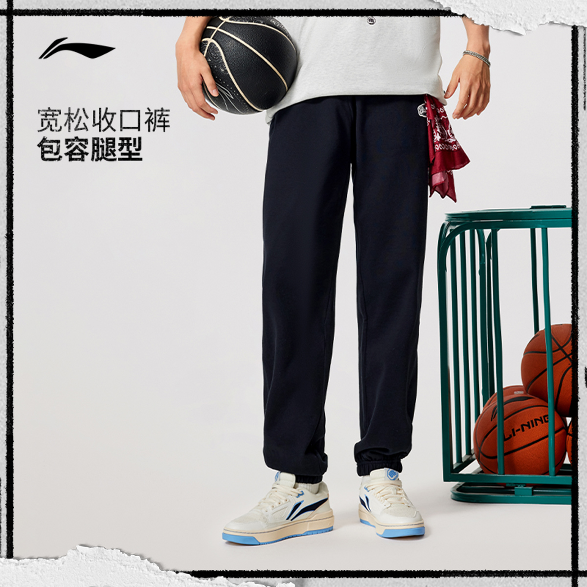 李宁卫裤2025新款男士休闲黑色裤子宽松毛圈束脚针织运动裤男裤