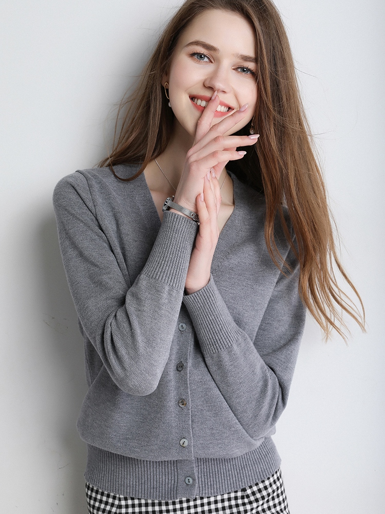 特价春秋羊毛开衫女短款外搭v领薄宽松针织长袖毛衣韩版毛衫外套