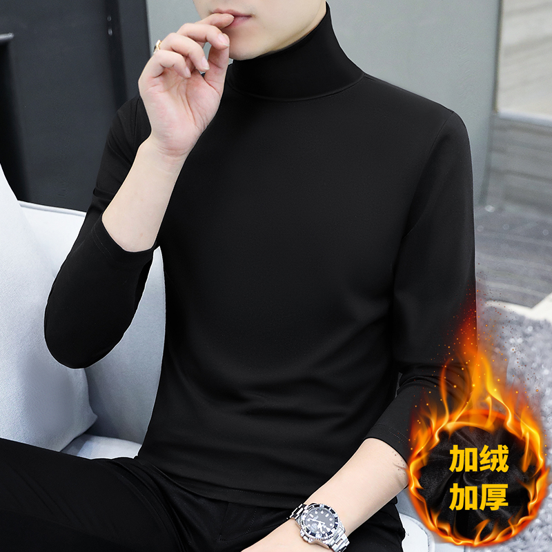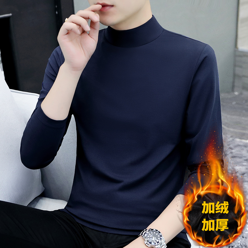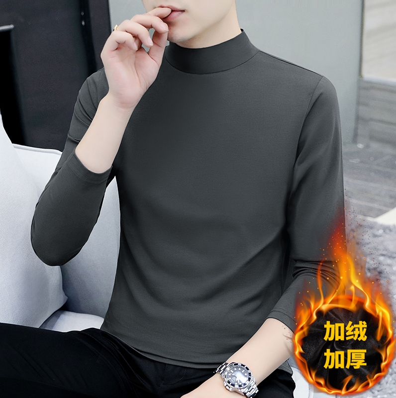 纯棉半高领加绒打底衫男长袖t恤