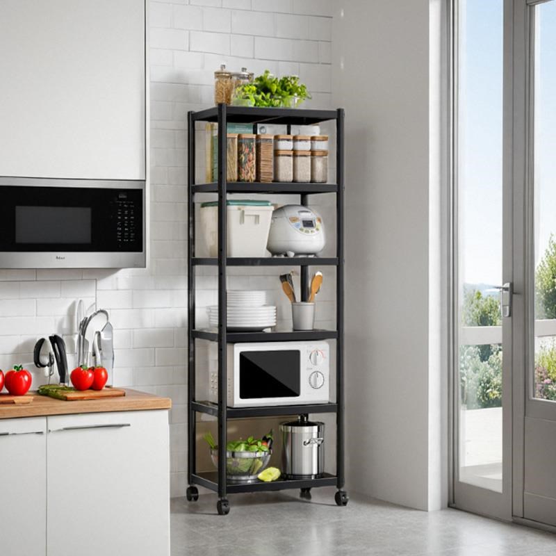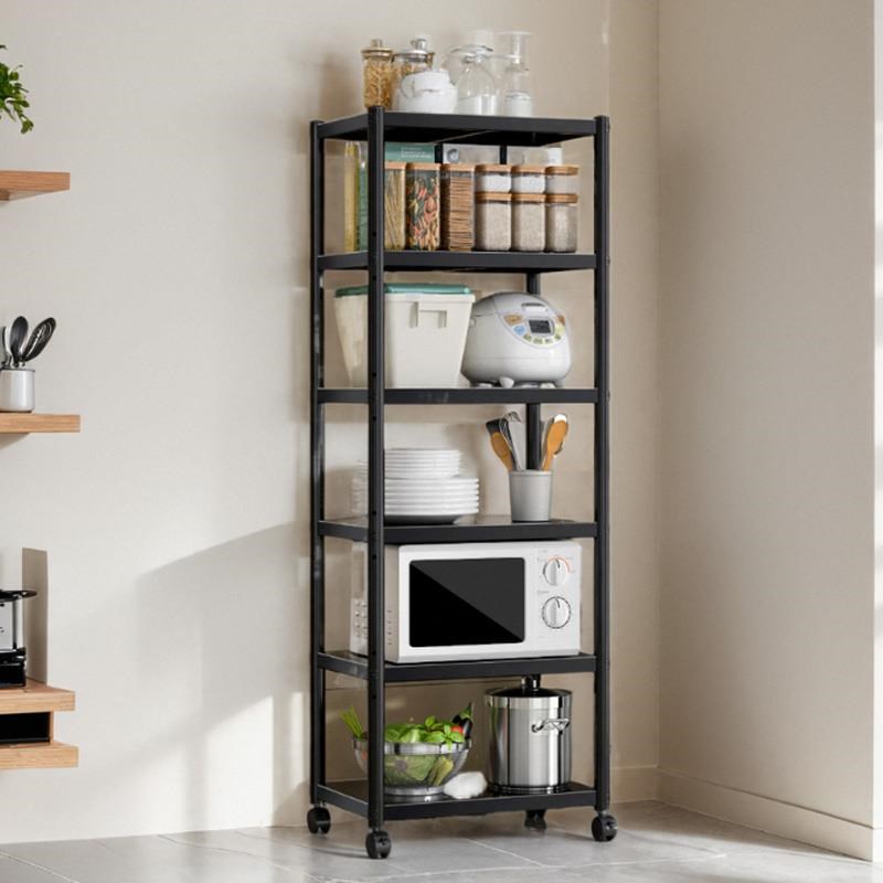碳钢带轮置物架落地多层微波炉烤箱收纳夹缝架子家用储物货架锅架