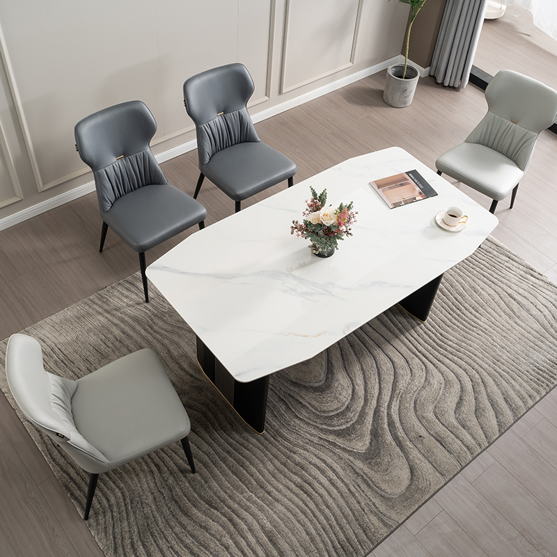掌上明珠1.4m岩板餐桌现代轻奢大理石纹软P包餐椅家用饭桌 CX