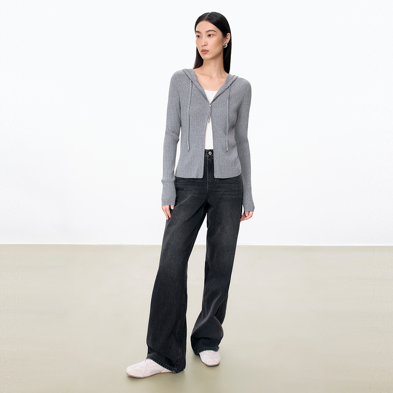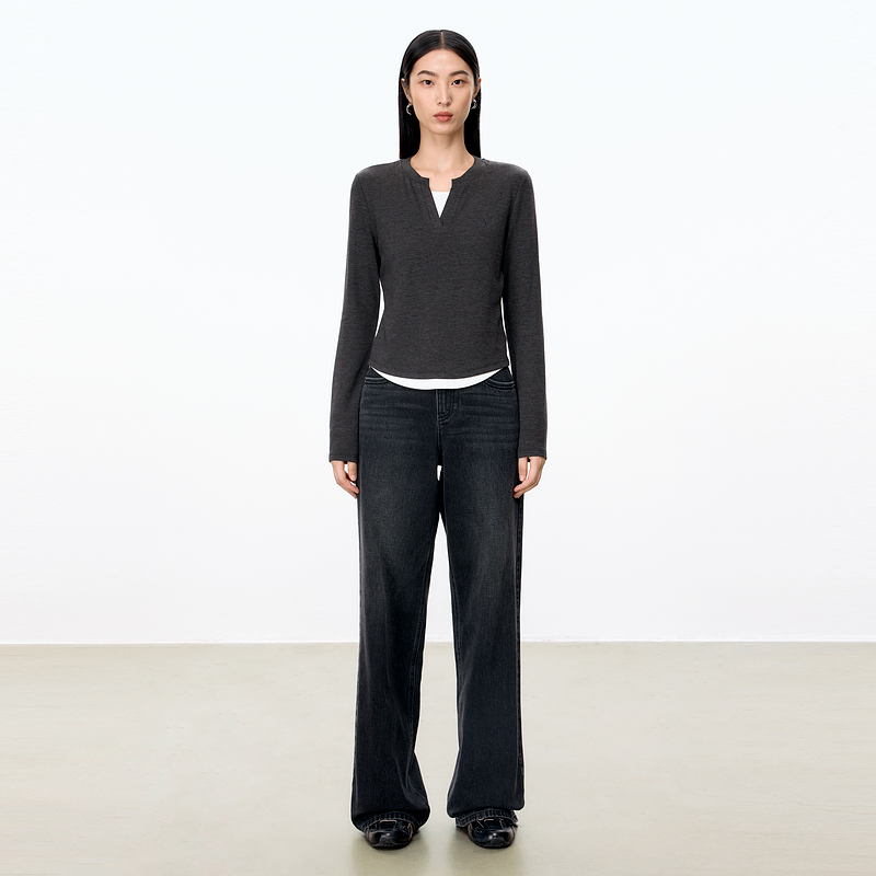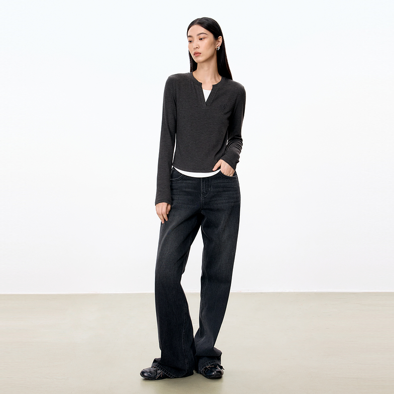 水云间女装 高腰宽松纯棉休闲水洗牛仔裤直筒裤长裤2025秋季新款