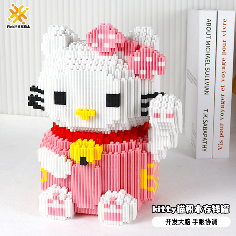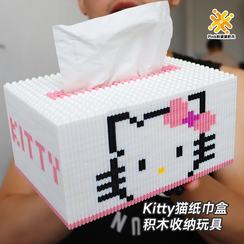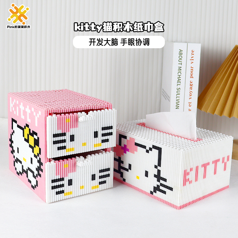 新款凯蒂猫小颗粒拼装积木玩具纸巾盒益智拼图手工生日礼物生女孩