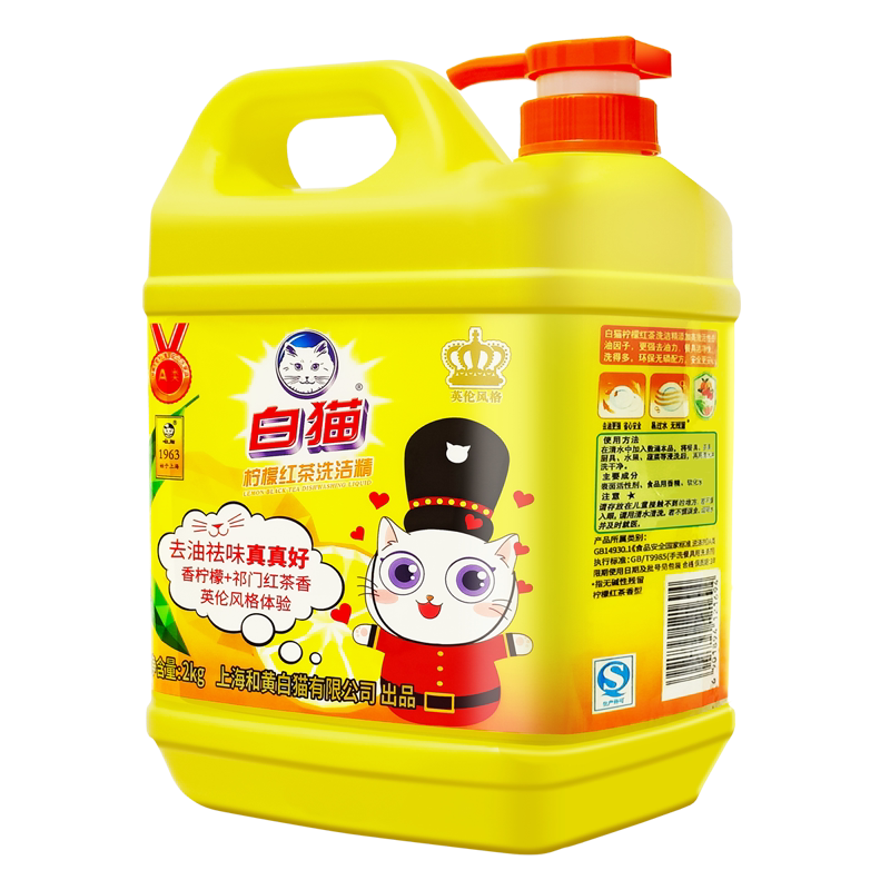 白猫洗洁精白猫洗洁精柠檬红茶家用按压瓶桶洗碗液大桶家庭实惠装