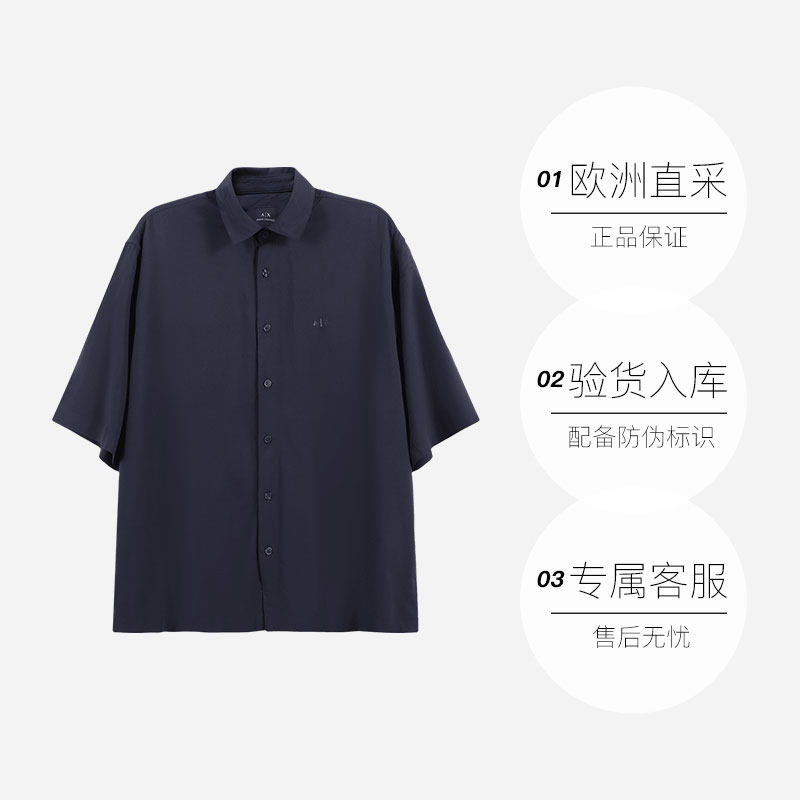 【自营】阿玛尼 AX 男士宽松版休闲短袖翻领衬衫 3DZC01 ZN3UZ