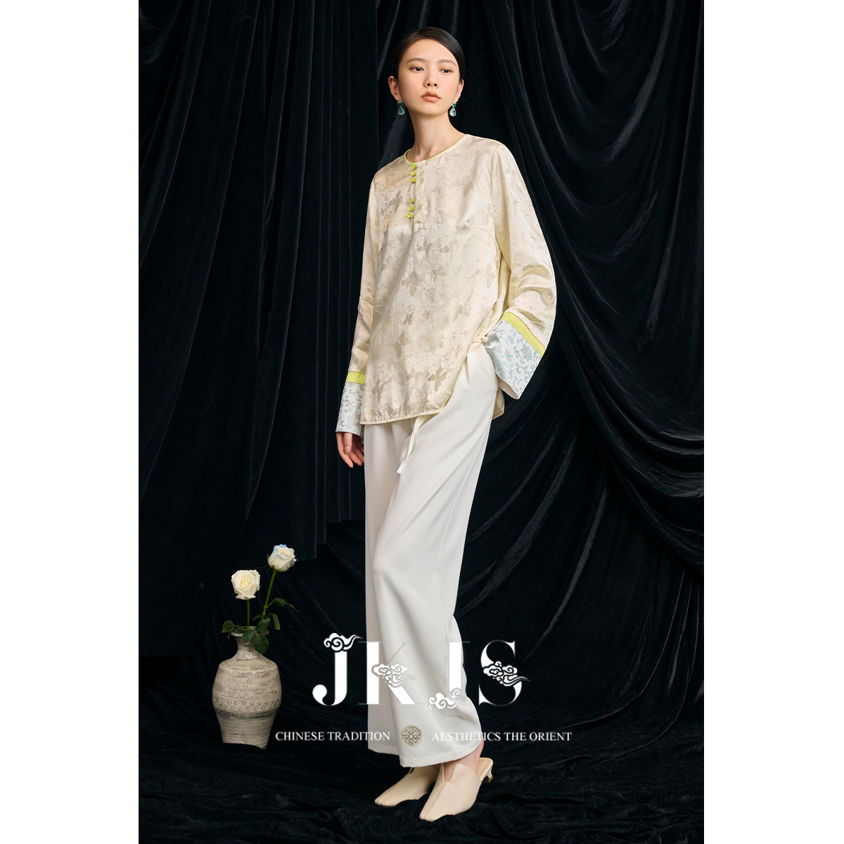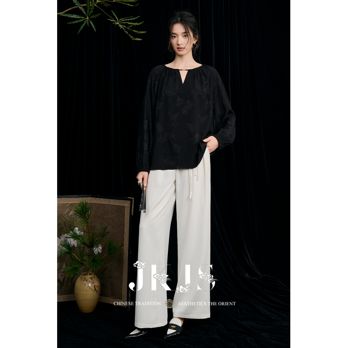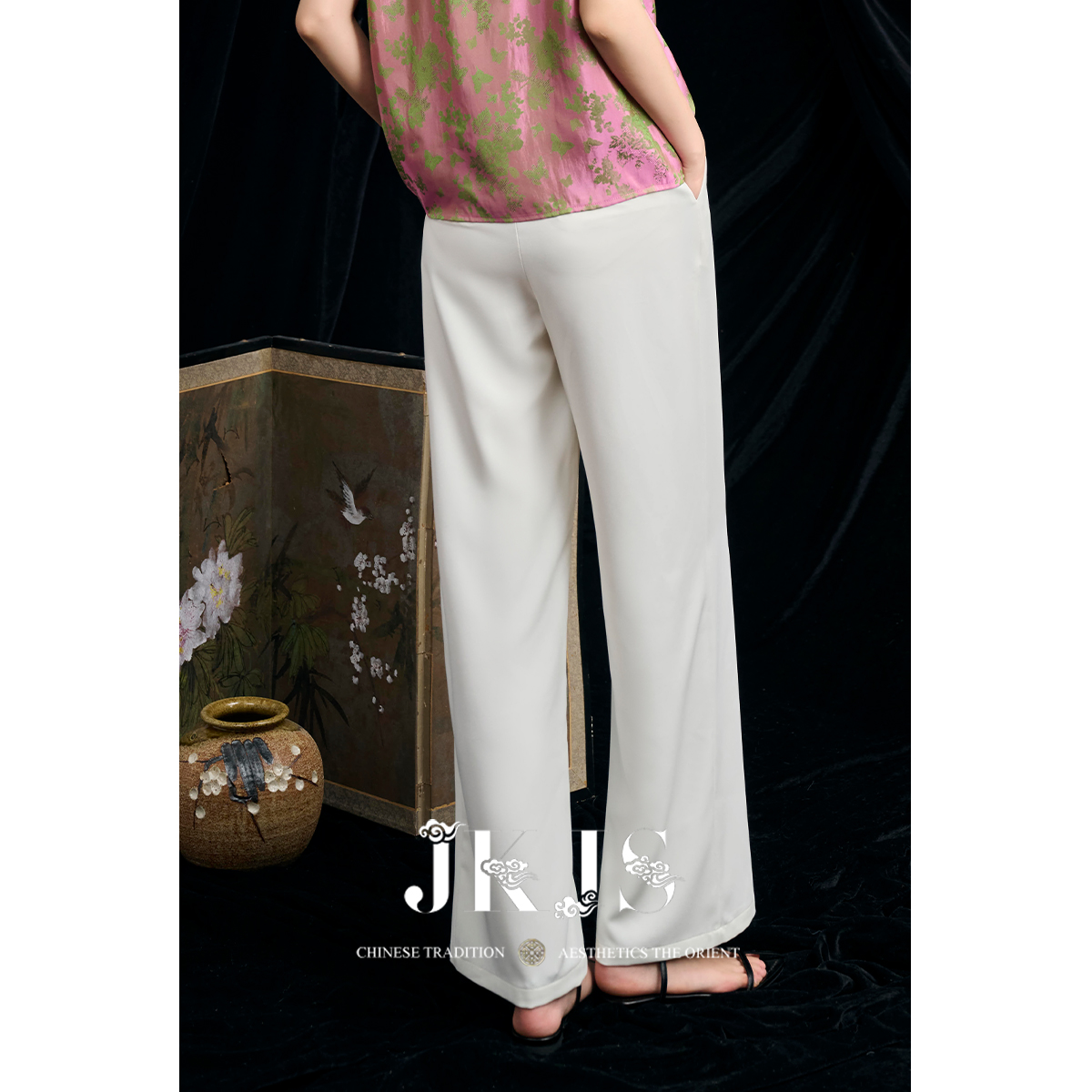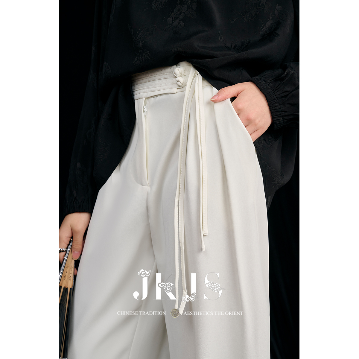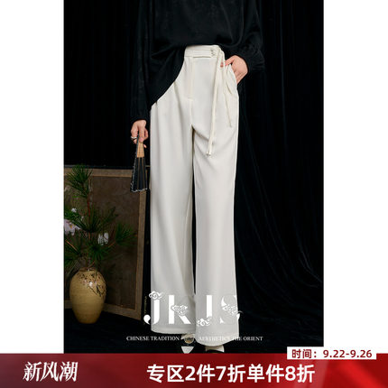 JKJS新中式搭配必备单品 长裤春秋2025新款白色裤子休闲裤阔腿裤