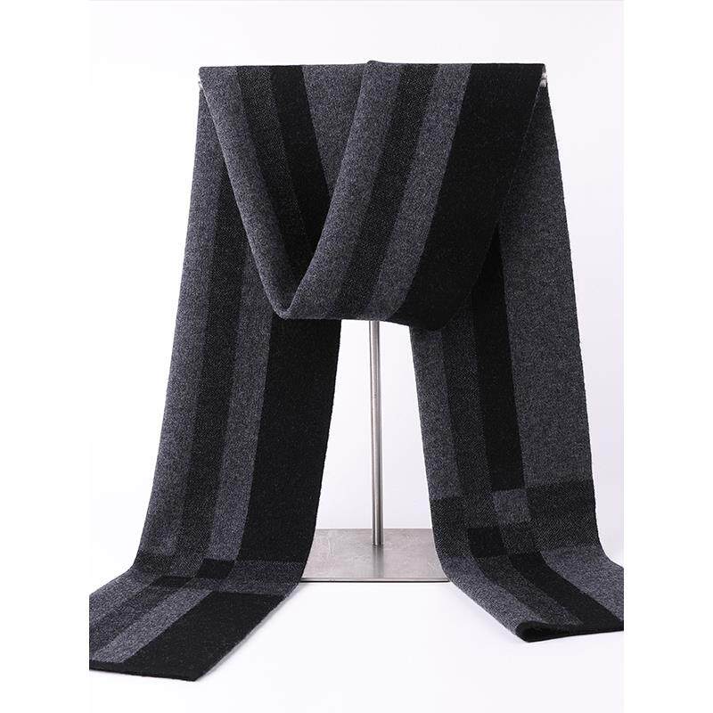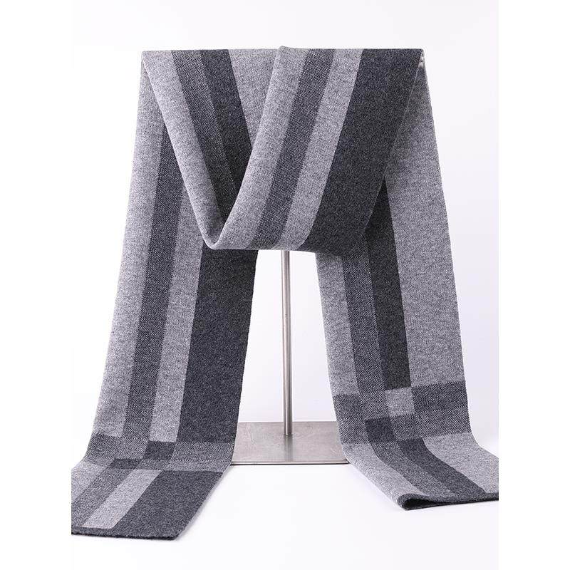 鄂尔多斯市100%纯羊毛男士围巾酒红色条纹加厚送爸爸保暖羊绒围脖