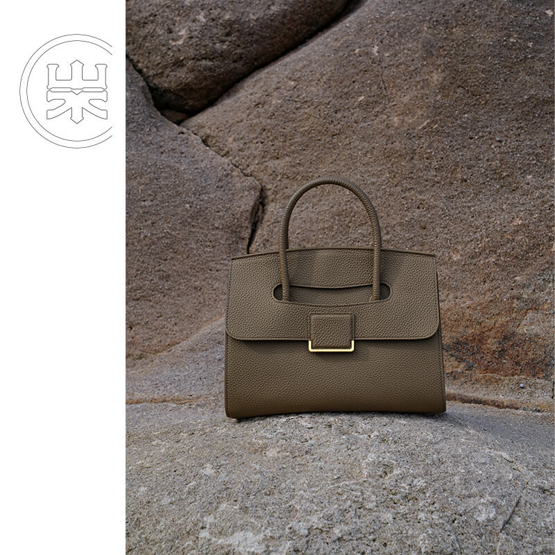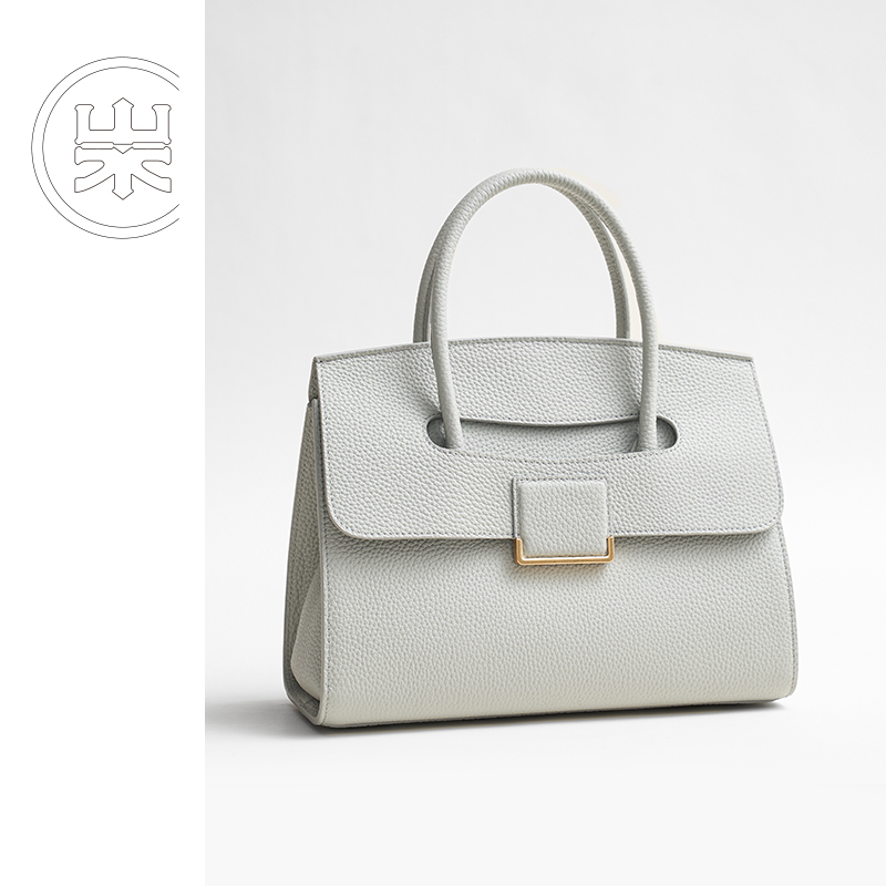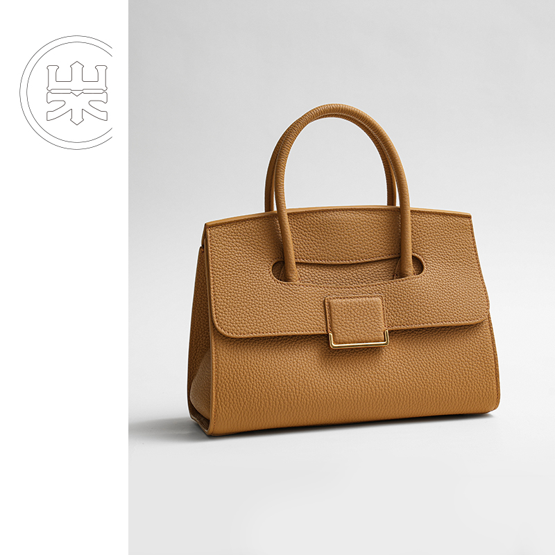 山水集小款公文包头层牛皮荔枝纹女通勤时尚潮流高级质感手提包女