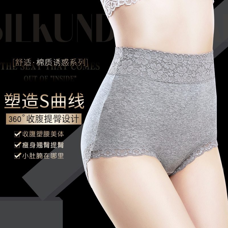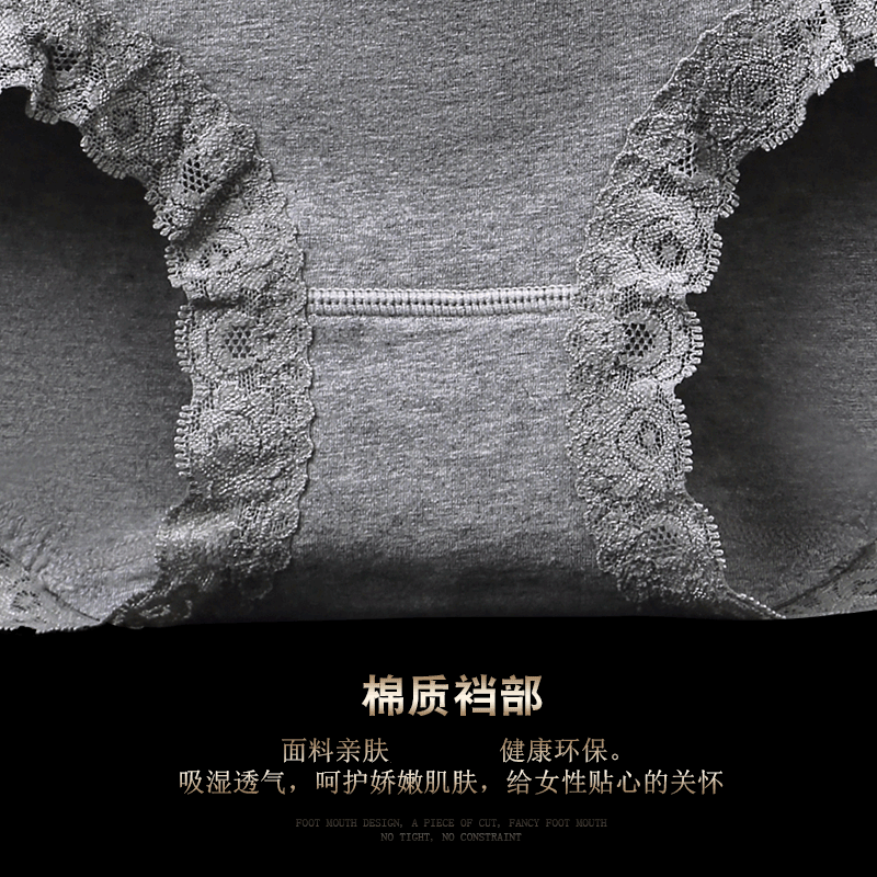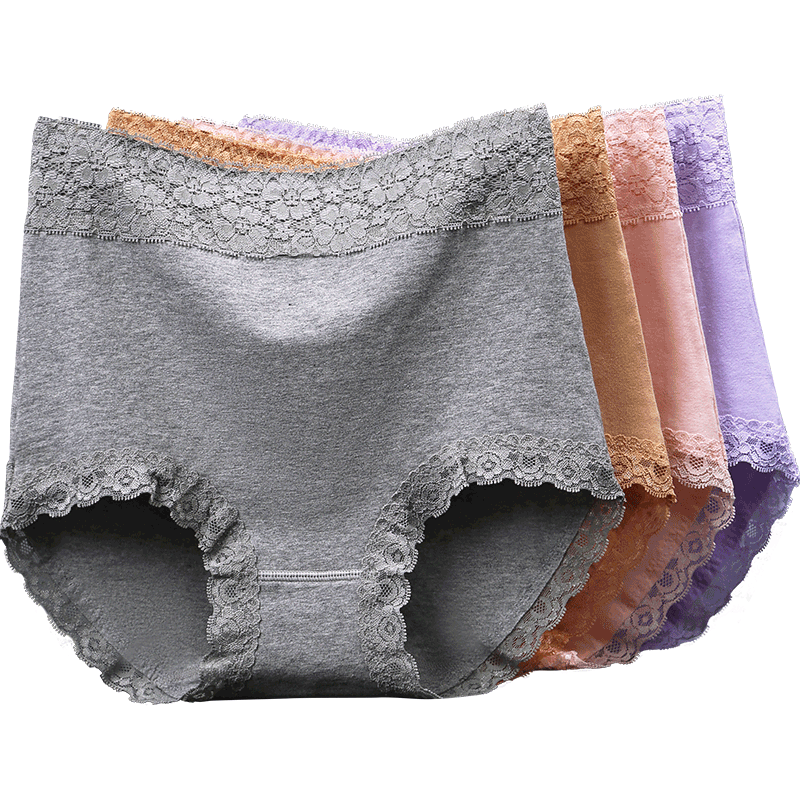 isosos5条装 高腰内裤女棉质裆部收腹提臀蕾丝大码棉质面料三角裤