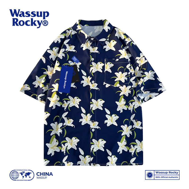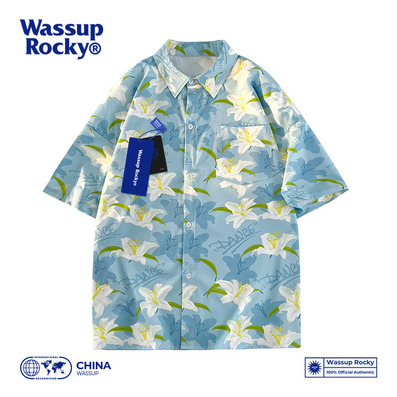 WASSUP ROCKY夏威夷短袖花衬衫古着碎花沙滩衬衣中国风新中式百合