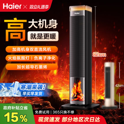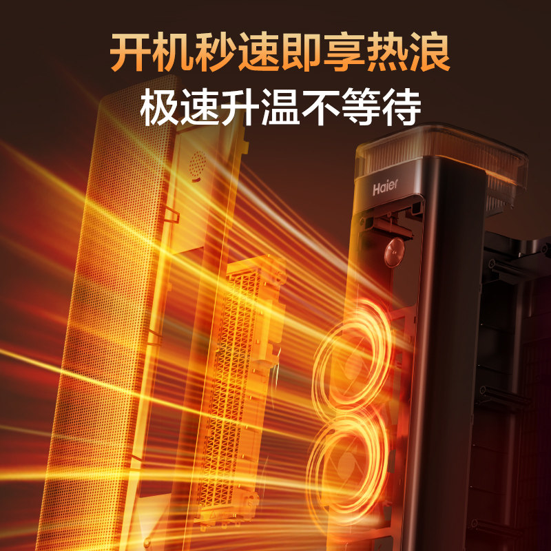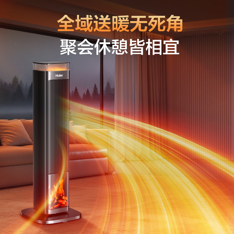 海尔石墨烯暖风机取暖器家用速热节能电暖气火焰语音烤火炉冬季