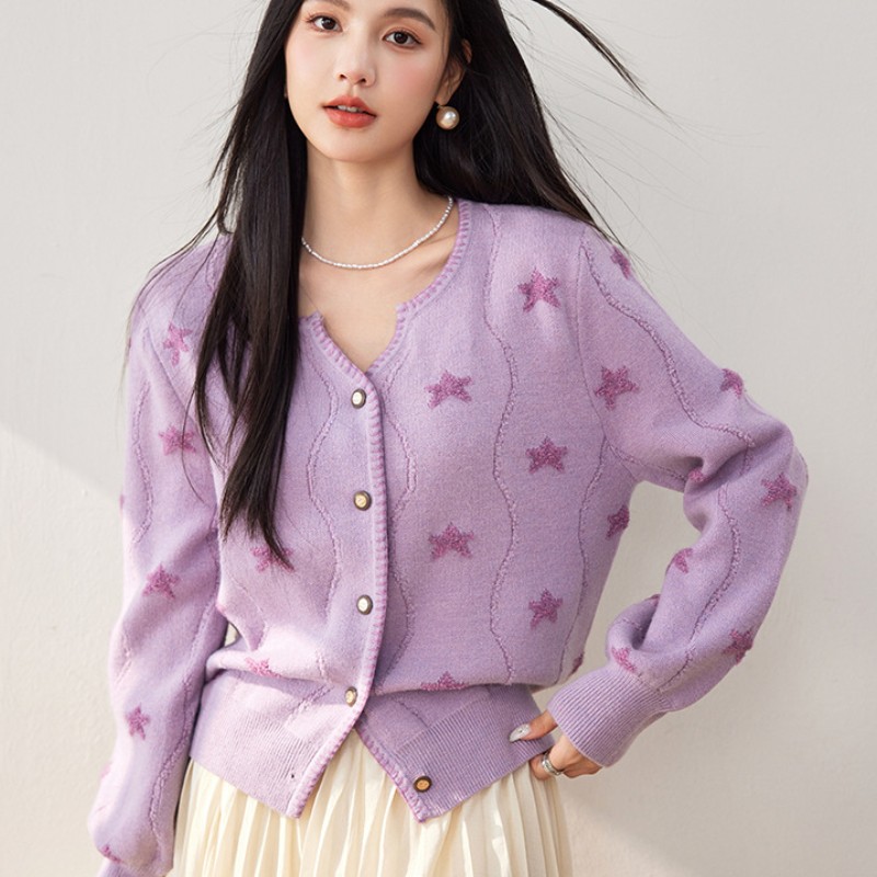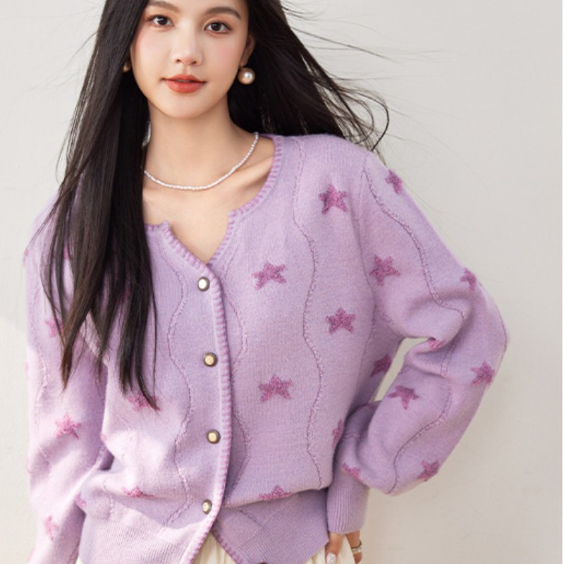 V领针织外套女短款秋装2025新款宽松外搭毛衣开衫百搭春秋季休闲