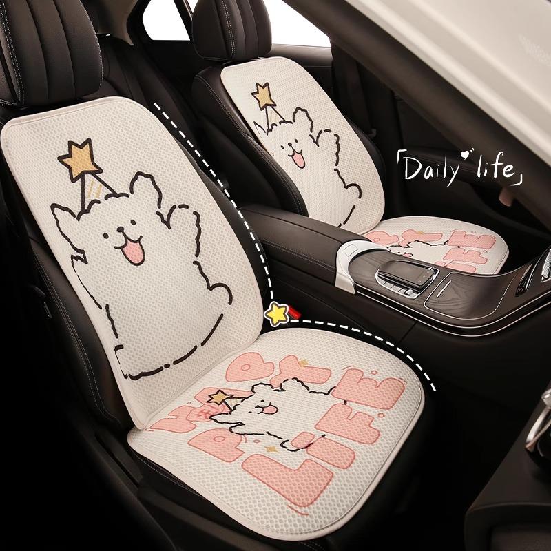 汽车坐垫线条小狗四季通用夏季透气车内半包座套后排卡通可爱座垫