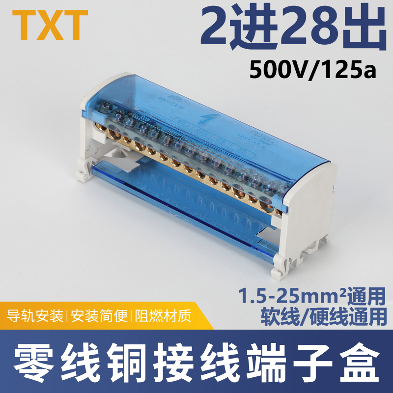 铜接线端子排 零线接线盒 2排15孔多进多出多孔125A大电流 零地排