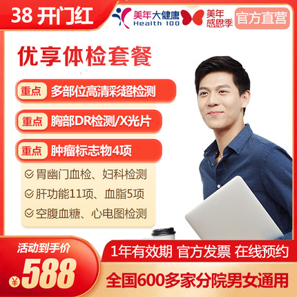 美年大健康 优享超值体检套餐 中青年 家人精英白领 男女通用体检