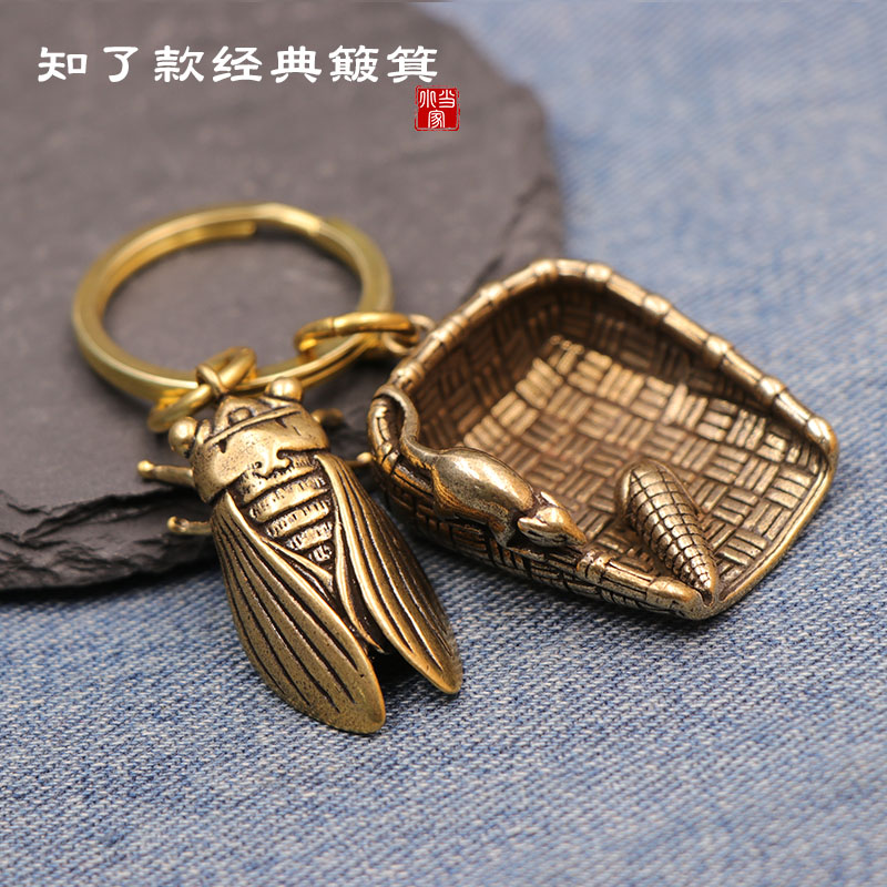纯黄铜玉米簸箕钥匙扣老鼠簸箕挂件吊坠儿童创意礼品热卖包邮男女