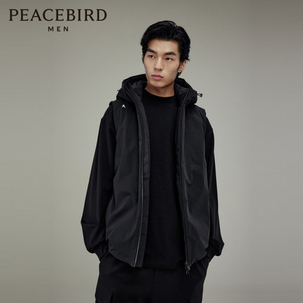 【断码钜惠】太平鸟男装 棉马甲男秋冬季休闲黑色连帽背心外套男