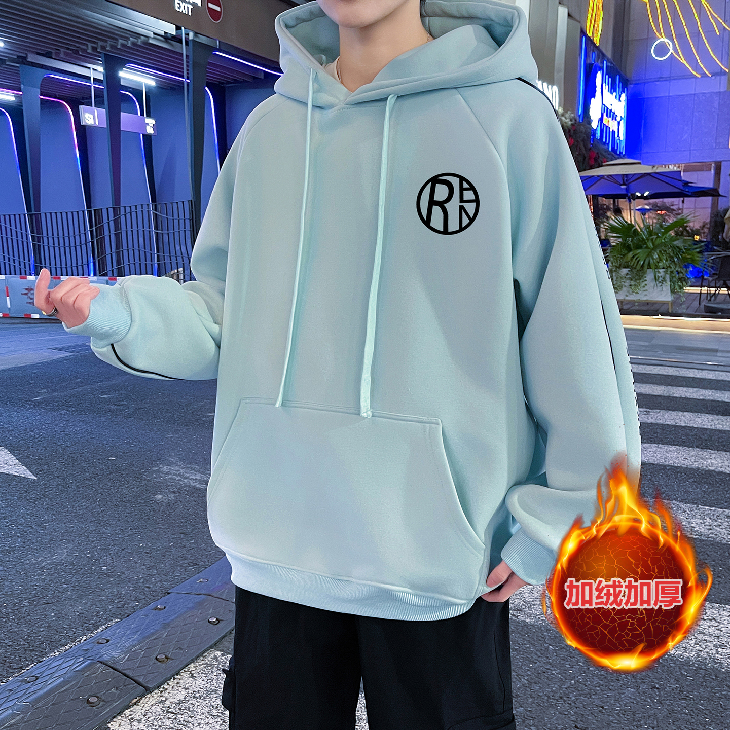 潮流连帽卫衣男加绒加厚长袖t恤