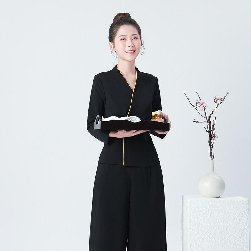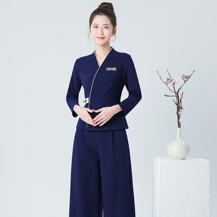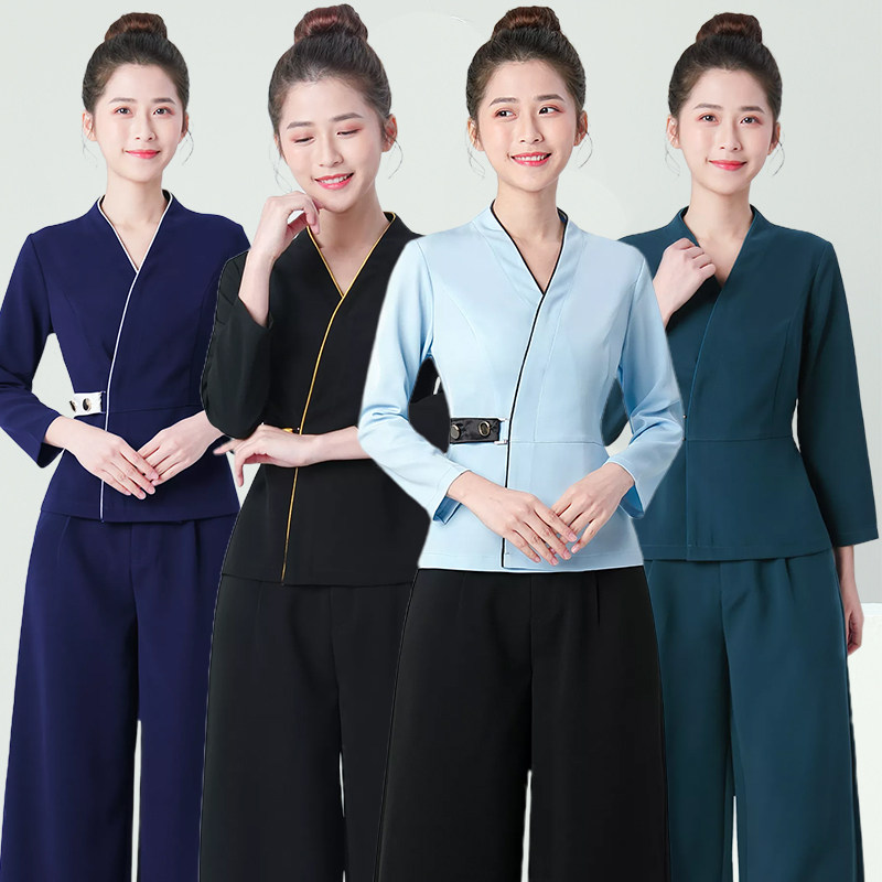美容师工作服女秋冬新款足浴养生SPA会所高端美容院套装长袖工衣