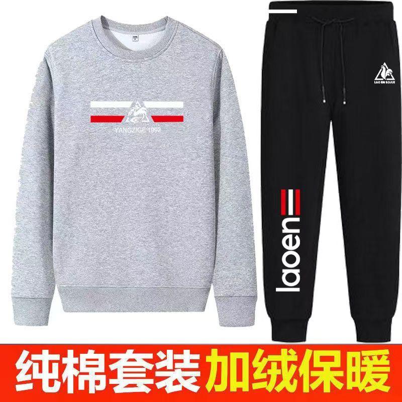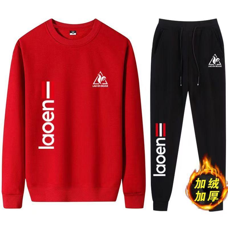法国公鸡休闲纯棉卫衣套装男潮流运动加绒加厚圆领长裤两件套保暖