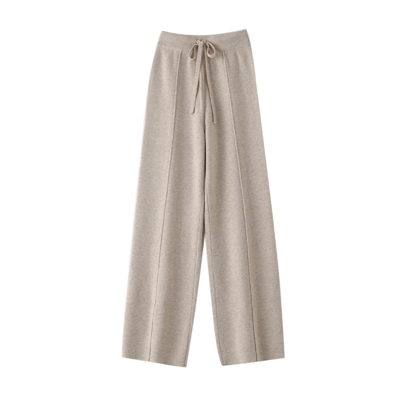 【工厂直销】100%羊绒针织阔腿裤女宽松外穿纯羊毛显瘦拖地直筒裤