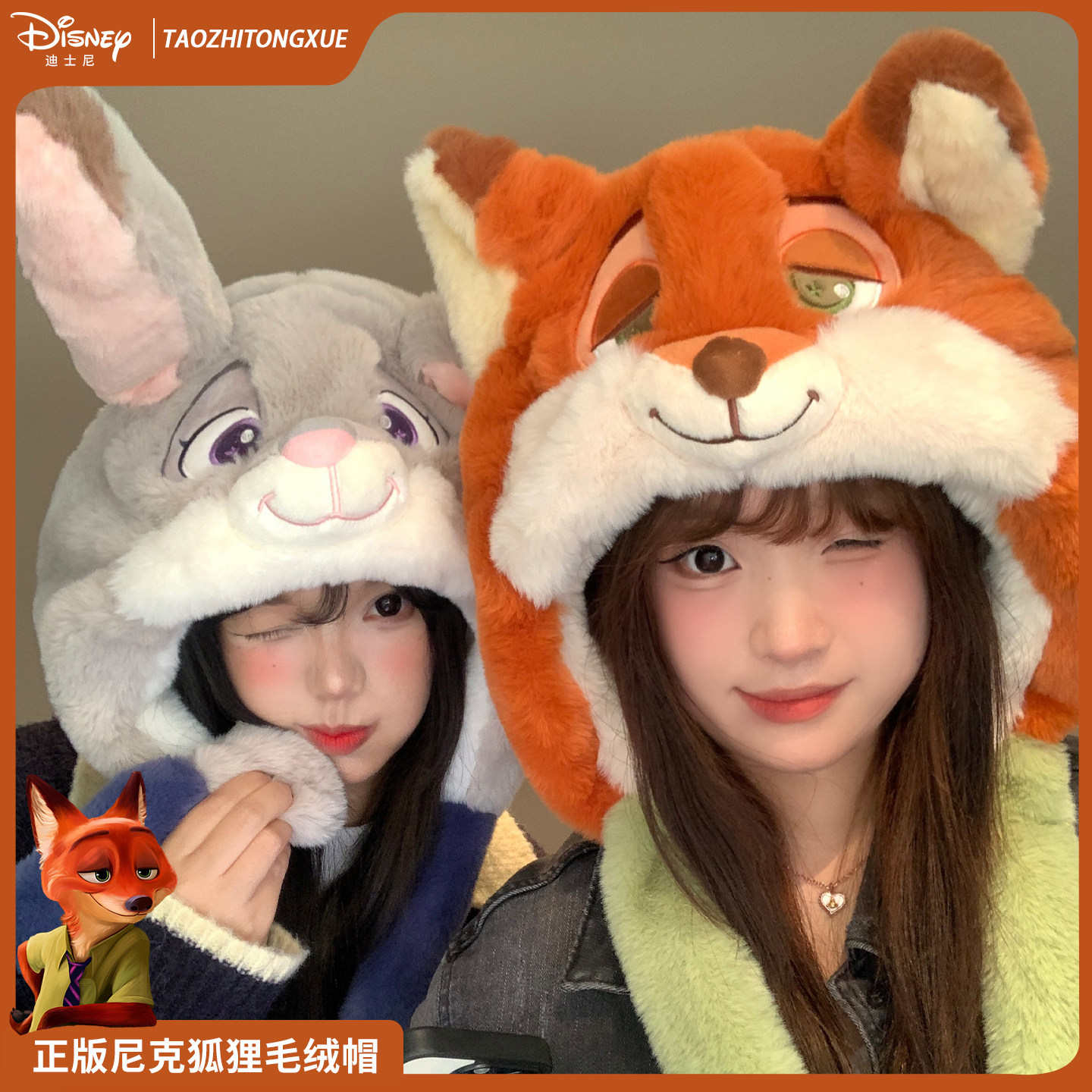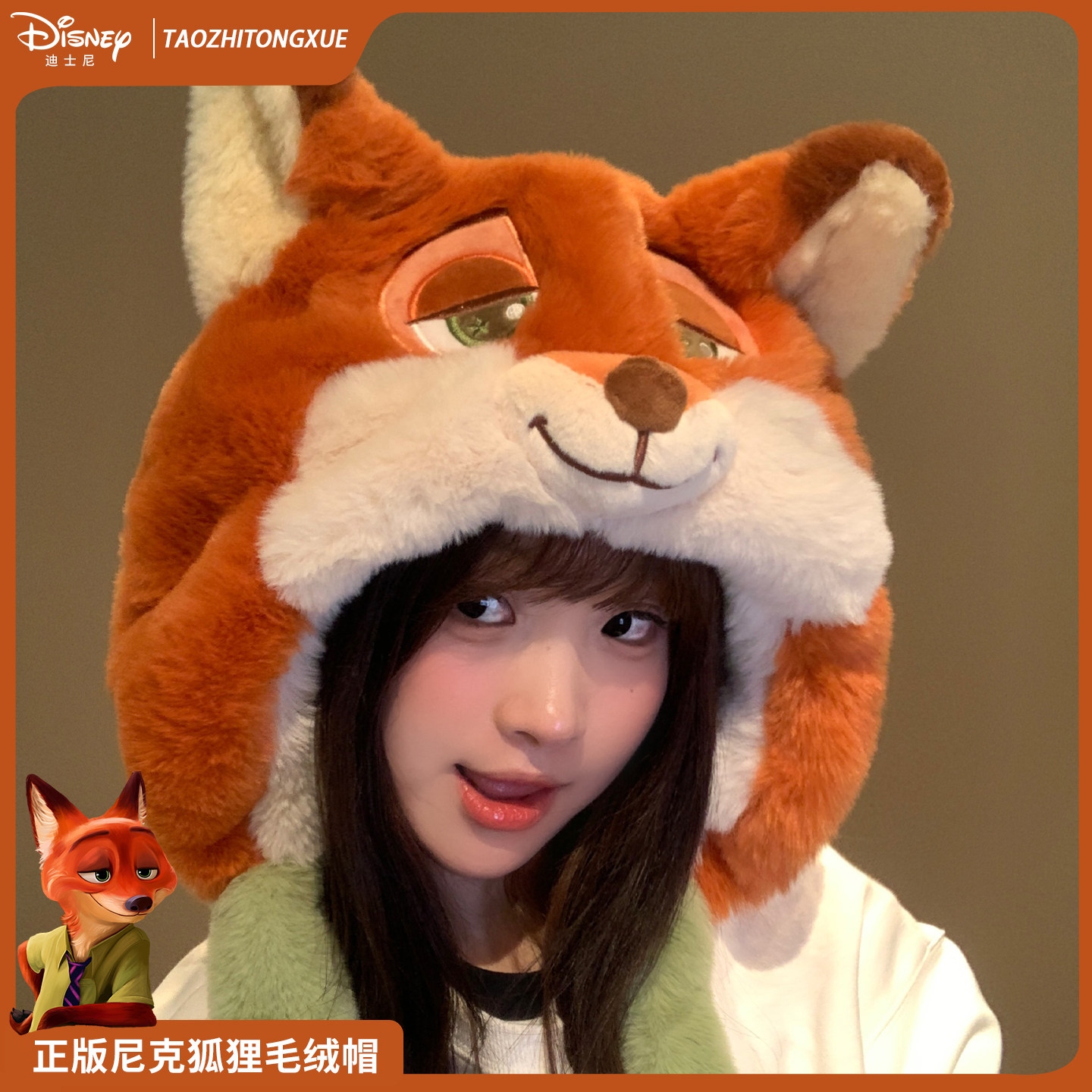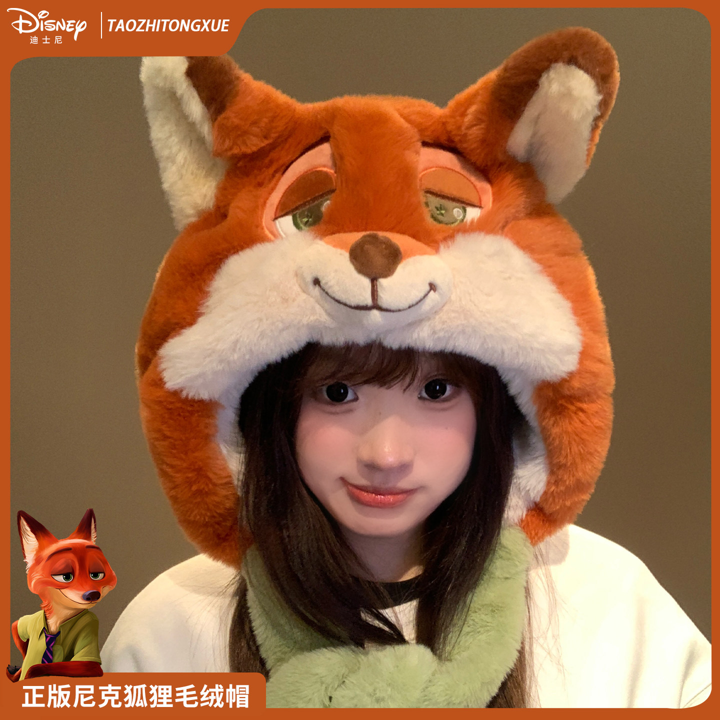 疯狂动物城迪士尼朱迪尼克毛绒帽子女冬季保暖可爱护耳雷锋帽情侣