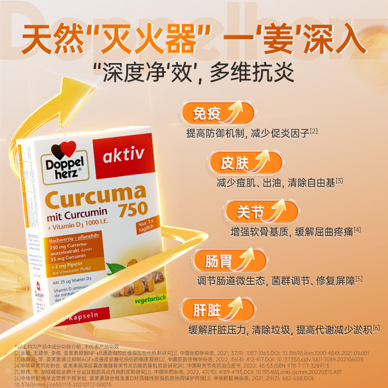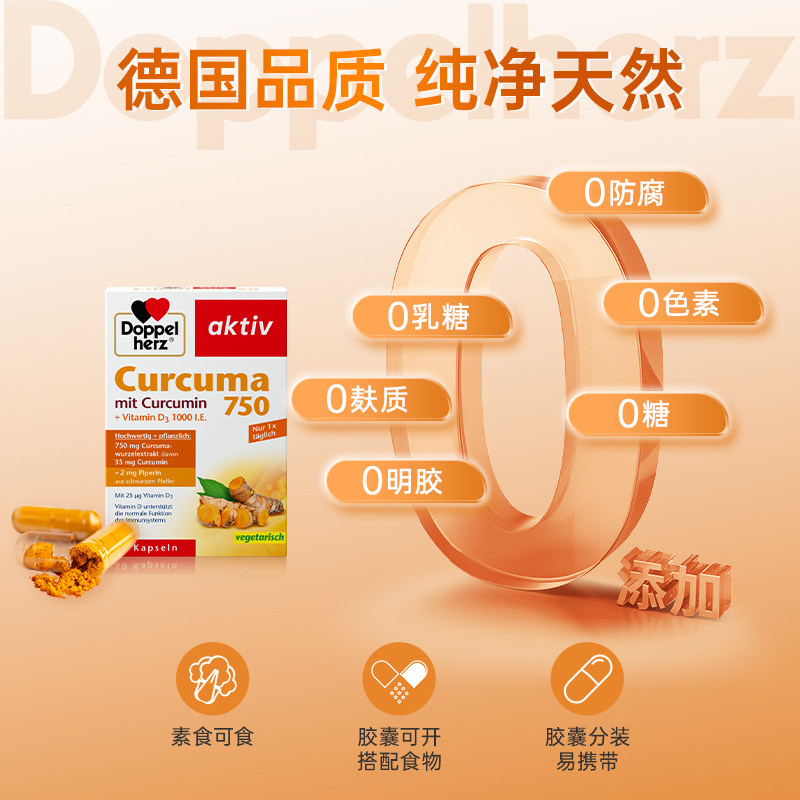 【自营】德国双心原装进口姜黄素胶囊黑胡椒天然片提取物高含量*6