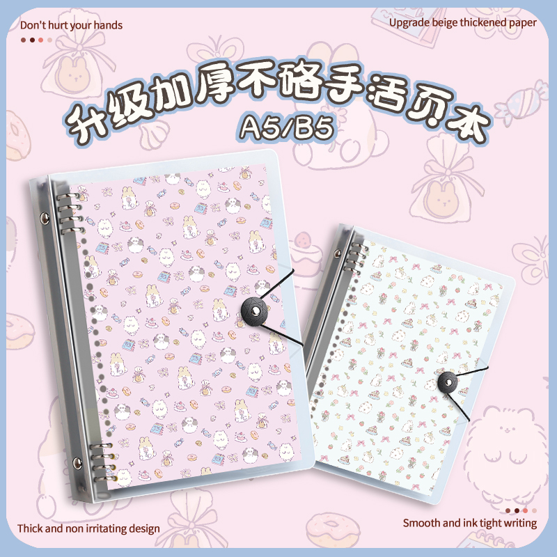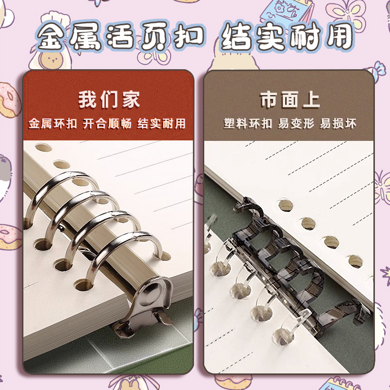 泡芙奶霜笔记本少女心学生不硌手活页本铁夹式ins高颜值A5记事本可拆卸B5大号手账本初高中生日记本